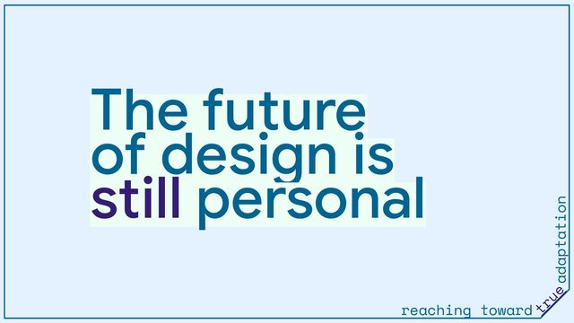 The discipline of design has historically produced fixed products. Even the term "product" implies the end of a process, or something that is completed and typically unchanging. But we know that the intent of the designer and of the person experiencing the design are engaged in an ongoing conversation. Digital products have drastically increased the pace of that conversation, introducing faster iteration, new modes of interaction, and – importantly – space to imagine a future in which a person's intent directly defines their experience of digital interfaces. This essay connects historic conceptions of interface and adaptable design with contemporary developments and visions, looking toward a truly adaptive future that transforms “users” into individual creators by directly enabling the expression of their intent.