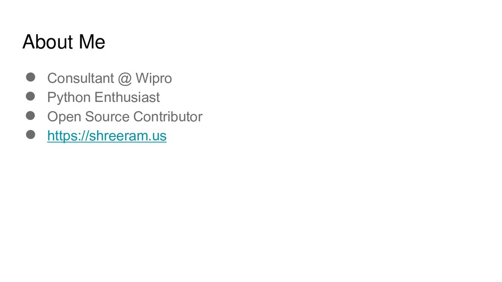About Me • Consultant @ Wipro • Python Enthusiast •