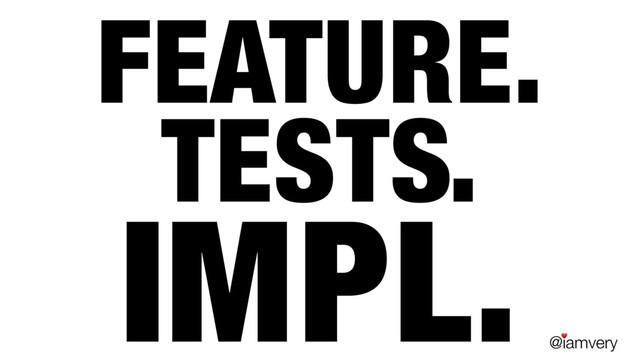 @iamvery ♥ FEATURE. TESTS. IMPL.