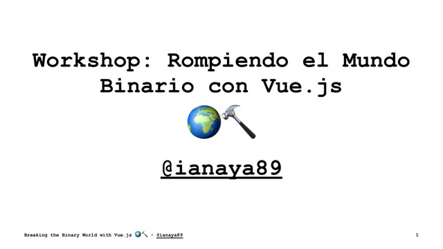Workshop: Rompiendo el Mundo Binario con Vue.js !" @ianaya89 Breaking