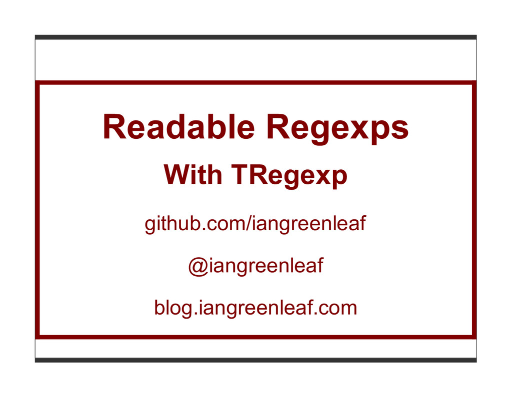 Readable Regexps With TRegexp github.com/iangreenleaf @iangreenleaf blog.iangreenleaf.com