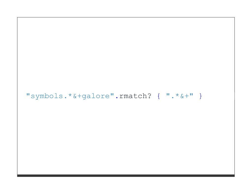 "symbols.*&+galore".rmatch? { ".*&+" }