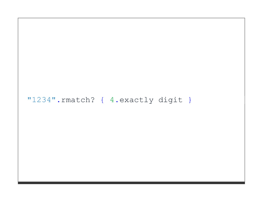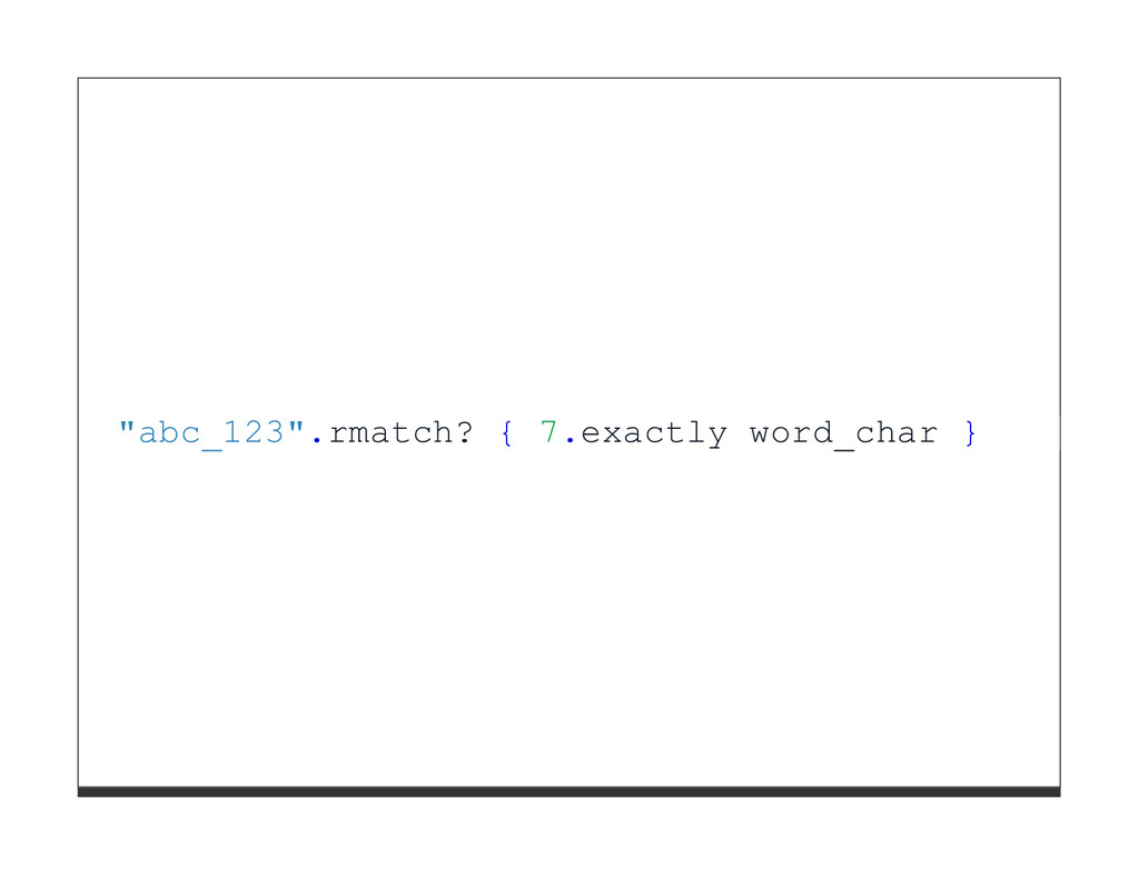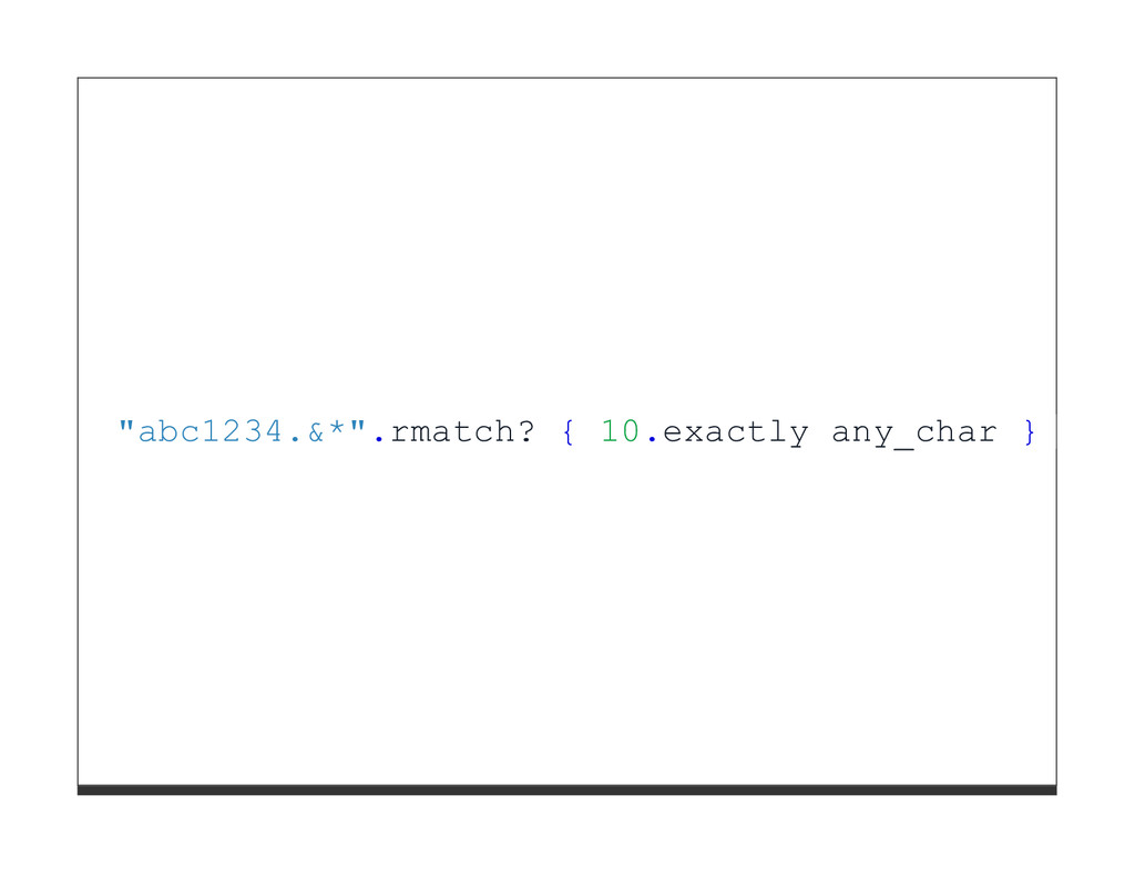"abc1234.&*".rmatch? { 10.exactly any_char }