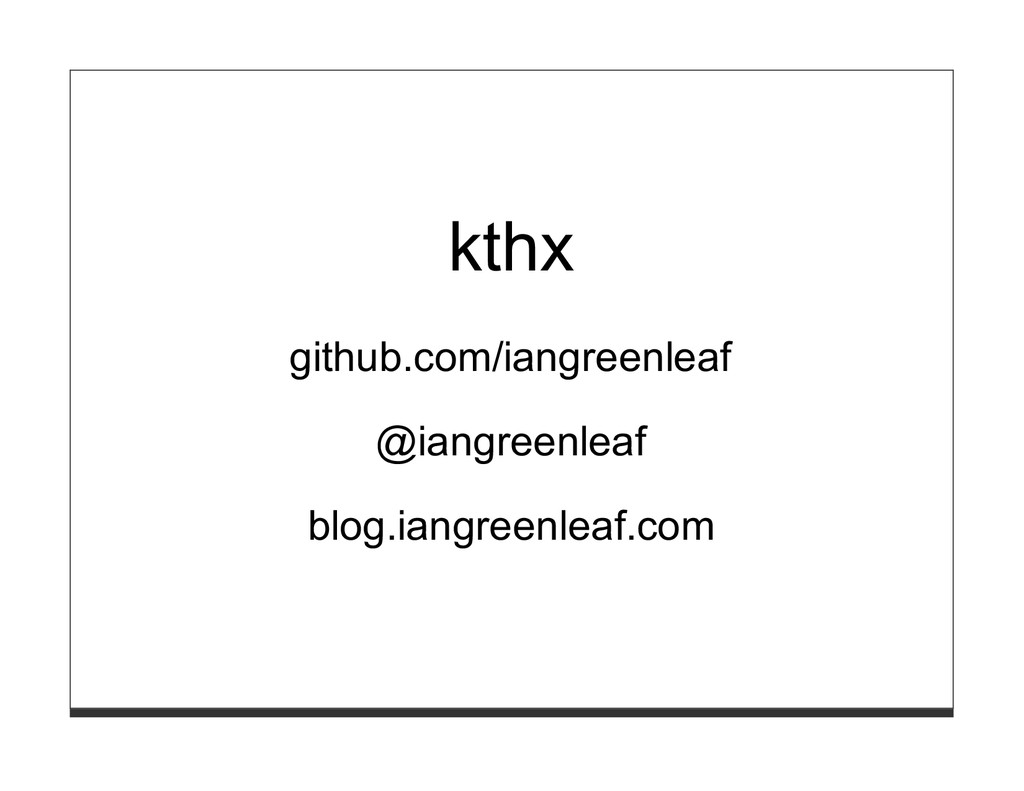 kthx github.com/iangreenleaf @iangreenleaf blog.iangreenleaf.com