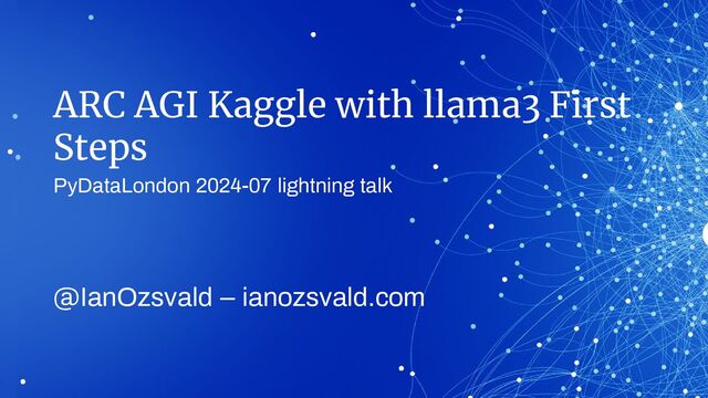 that they’re bad at reasoning $1M prize if LLM/other can solve these challenges Abstract shapes “initial → target” in JSON Open-weights models only (runs in off-line env) Abstraction & Reasoning Challenge By [ian]@ianozsvald[.com] Ian Ozsvald
