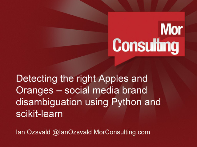 brand disambiguation using Python and scikit-learn Ian Ozsvald @IanOzsvald MorConsulting.com