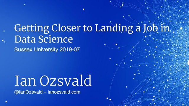 out what you want from a team Maybe join my jobs list for tips and my training list Get social – attend events and talk to folk Summary By [ian]@ianozsvald[.com] Ian Ozsvald