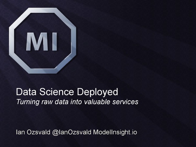 Need: High value & easy problem • Share insight, augment data, automate a process or predict the future • Deliver value at the end of day 1, day 2, week 1, week 2, month 1 etc • Tutorials on my blog (IanOzsvald.com)