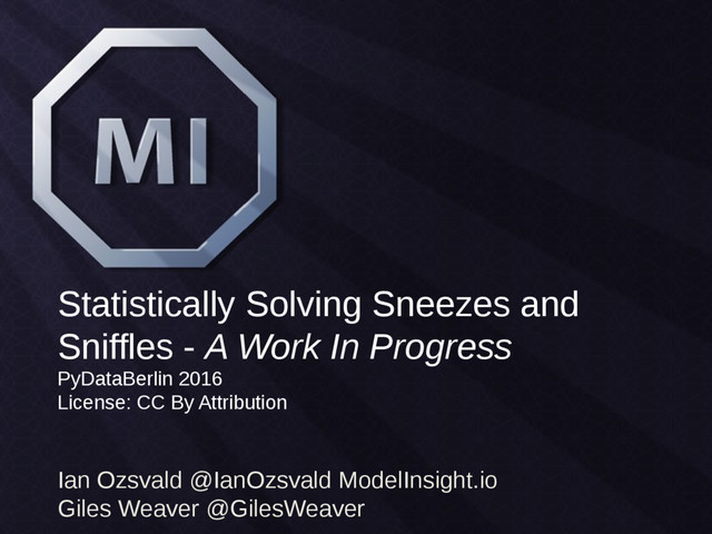 A group of us are attempting to solve my wife's Rhinitis using self-logged data, machine learning and a host of environmental features that we've logged from the environment. This talk discusses what did and didn't work and where we're taking the research in 2016.