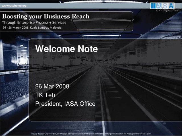 2004 known as ISAC-M, a Special Interest Group (SIG) of Malaysian National Computer Confederation (MNCC). Concerted effort by architects from the Industry, Vendors, Academic, Government & Non Government Organization 2005 Hosted Architect Summit, addressing common understanding and needs in IT architecture. 2006 Hosted Architect Symposium 2006, largest architect event at the time. Merged with IASA in July 2006 to form IASA Asia Pacific that will have physical offices in 15 countries: India, Indonesia, Malaysia, Thailand, Philippines, Singapore, Japan, Korea, China, Hong Kong, Pakistan, Vietnam, Taiwan & Russia 2007 Hosted Architect Symposium 2007, total delegates doubled. Hosted Monthly chapter meeting consistently for entire year. Assisted in developing and release of IT Architecture Master’s syllabus. Represented in National Standard Committees.