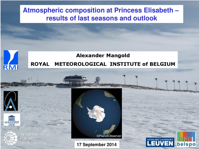 Prof. M. Hamilton, Univ. Adelaide, Australia / aim to distinguish liquid and ice phase of cloud first tests during 2014/15, together with radiosondes feasibility study for filter sampling for aerosol chemistry PANDORA multi-axis scattered sunlight measurements / lower tropospheric profiles of aerosol extinction coefficient, ozone, NO2 / total column ozone, NO2, AOD Partner Space Aeronomy Institute; probably from season 2015/16 on