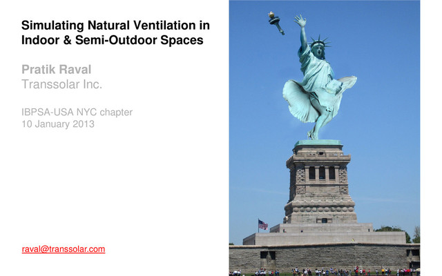 With the help of a couple of project examples, the talk will discuss different methodologies for simulating natural ventilation in indoor and semi-outdoor spaces. Beginning with the basic natural ventilation design concepts, the talk will focus on motivation, methodology, and goal of simulation appropriate for each project example.