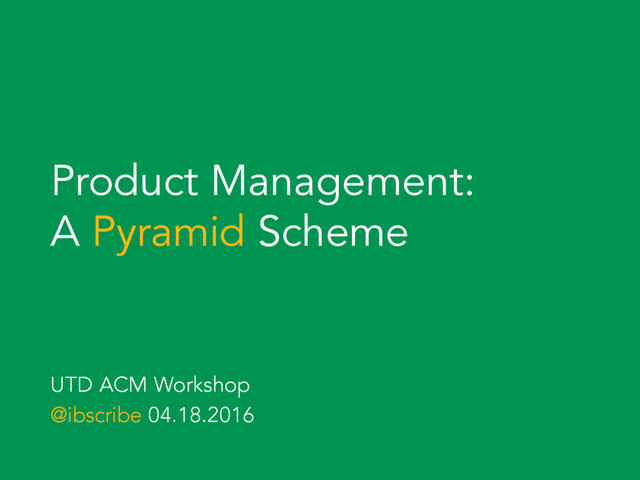 Product Management: A Pyramid Scheme UTD ACM Workshop @ibscribe 04.18.2016