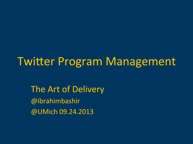 Twi$er Program Management The Art of Delivery @ibrahimbashir