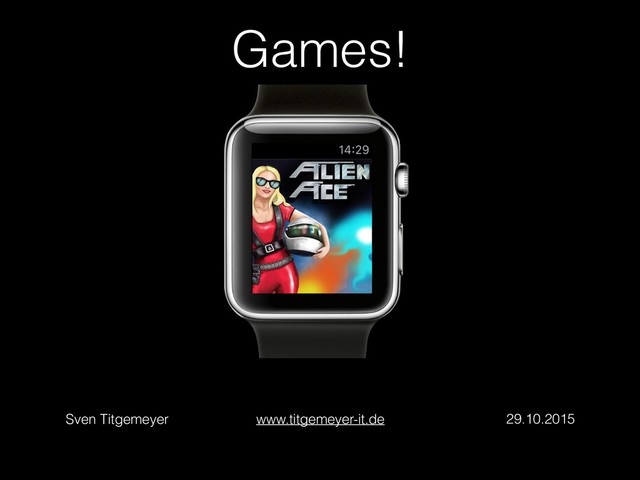 some years ago people asked „Why games on your phone?“ • small market, but less competitors • people don’t know what to do with their Apple Watch :p • add a small game to your existing iOS Game • daily quests • bonus points