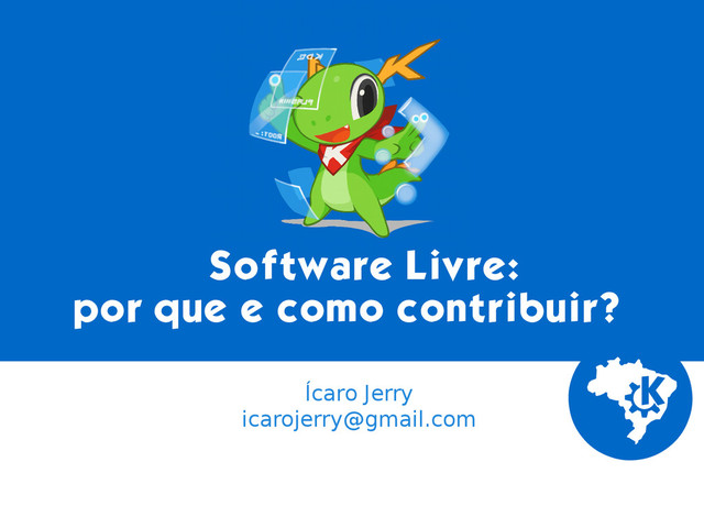 apresentando os principais motivos para levar em consideração à participação nessas comunidades, além de explicar também as maneiras de contribuir, levando em consideração o meu relato pessoal e início no "mundo livre" como membro e contribuidor na comunidade do KDE.