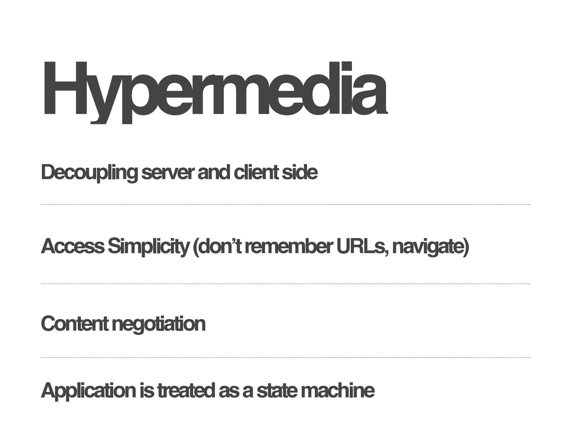 Content negotiation Decoupling server and client side Access Simplicity (don’t