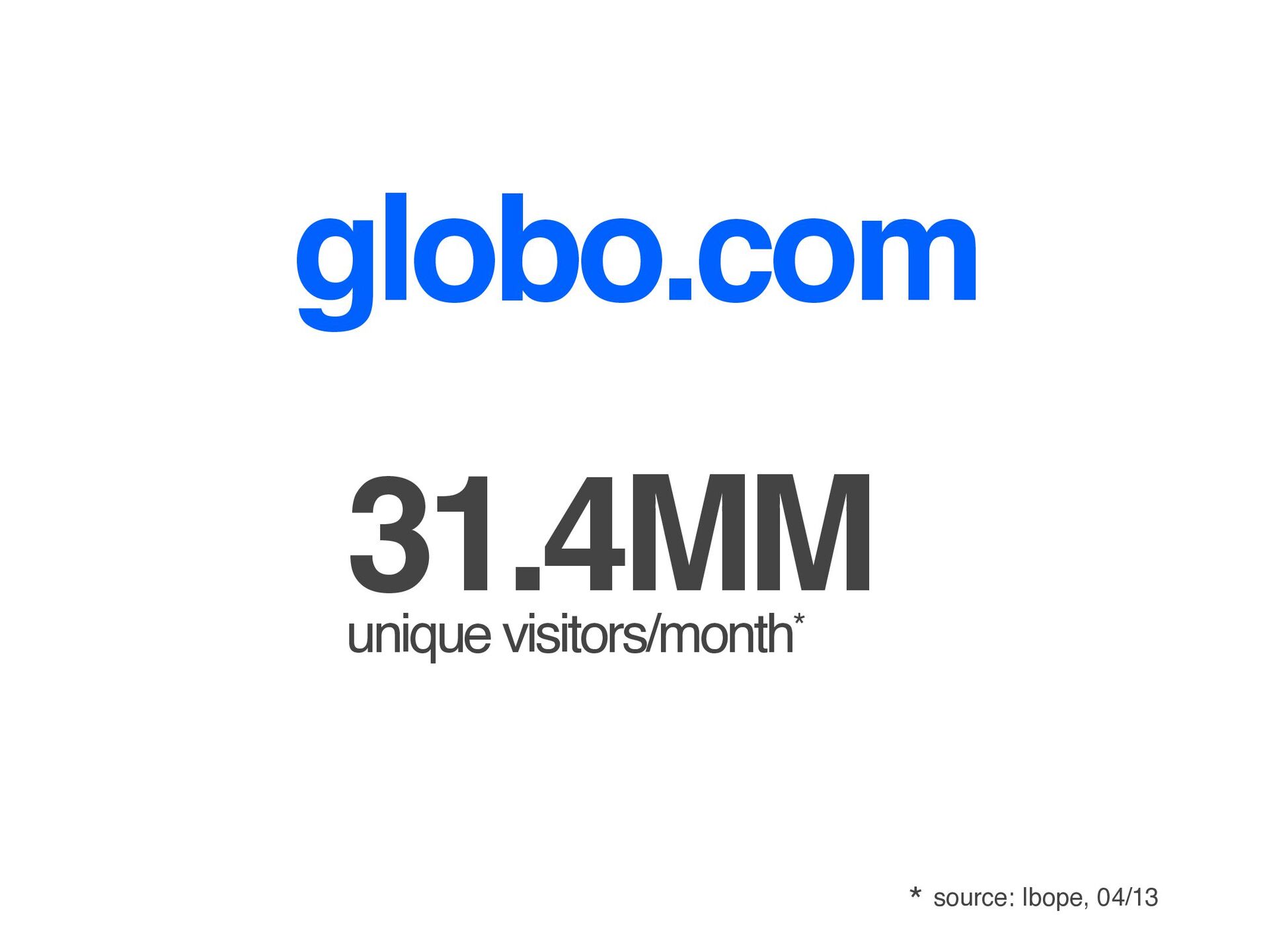 31.4MM unique visitors/month* * source: Ibope, 04/13 globo.com