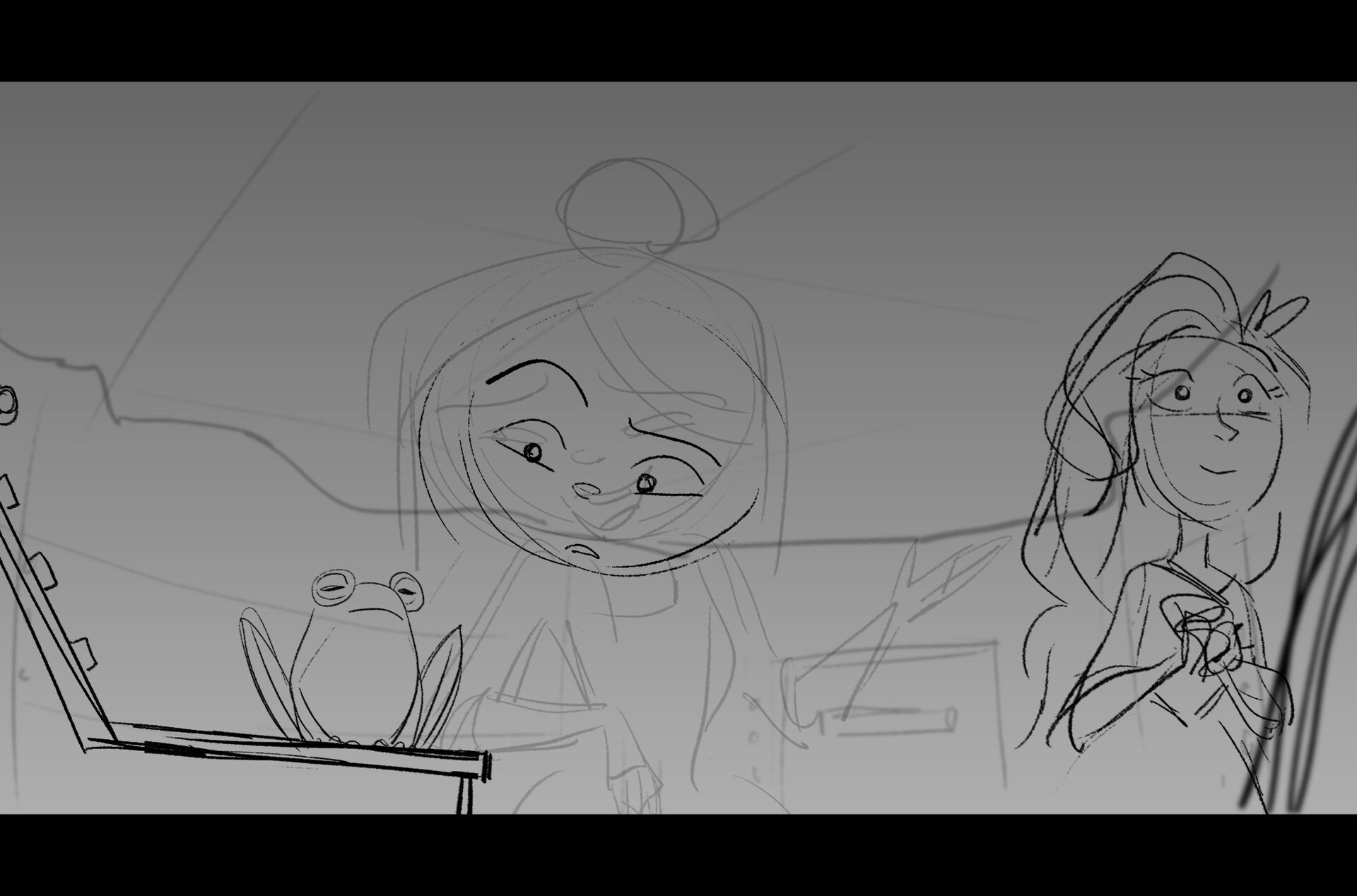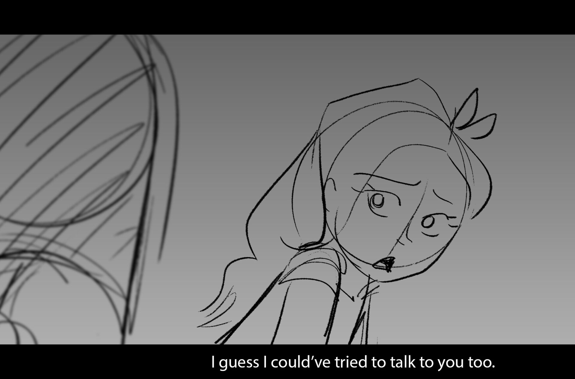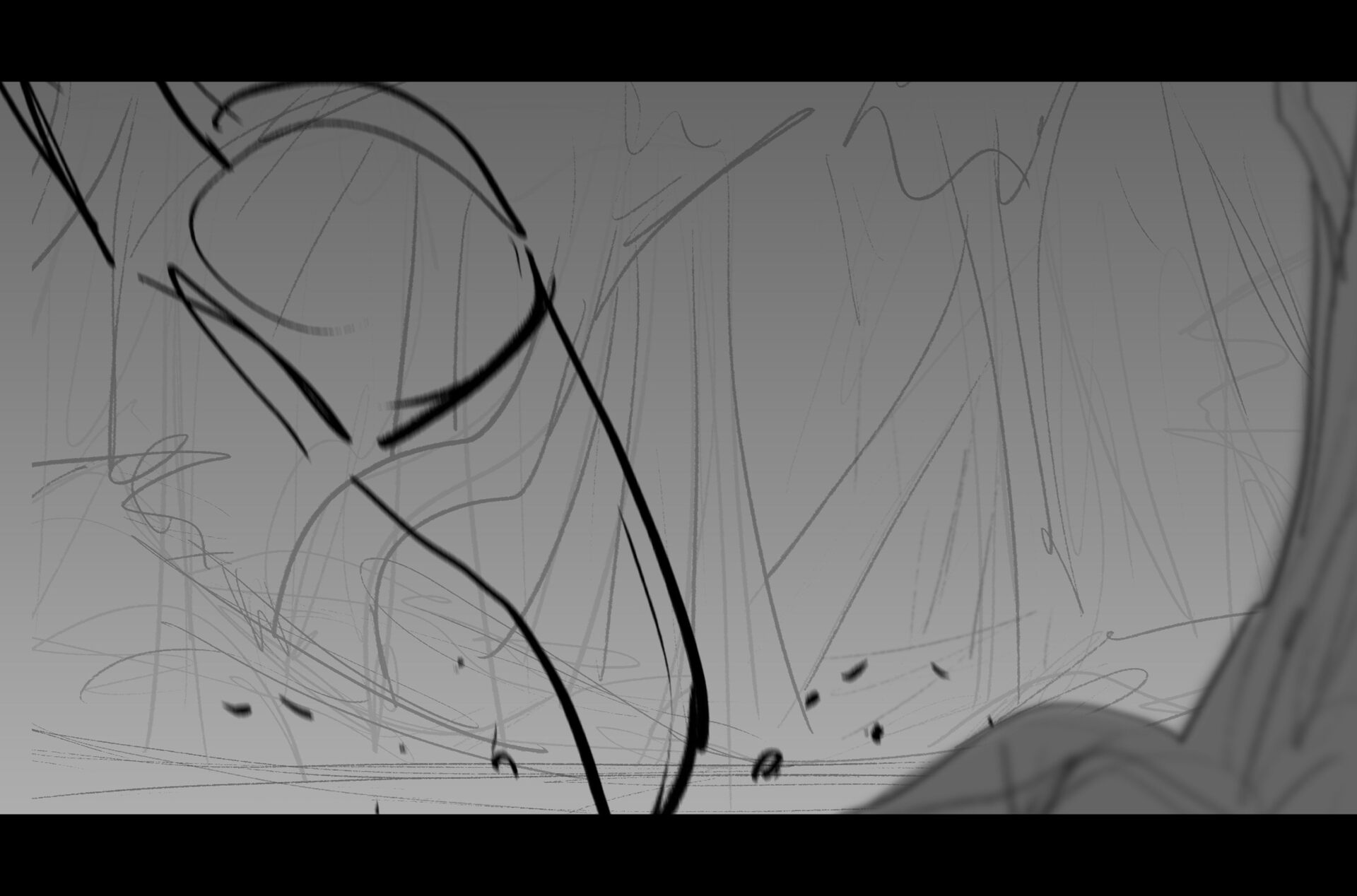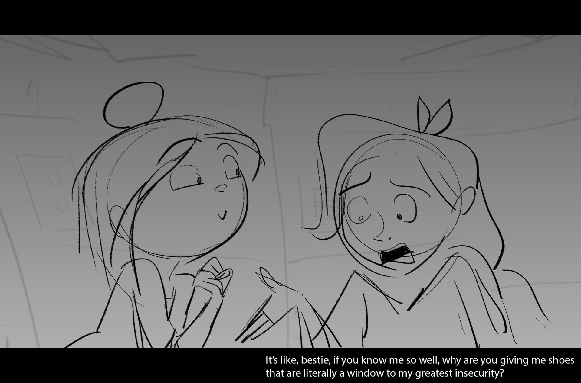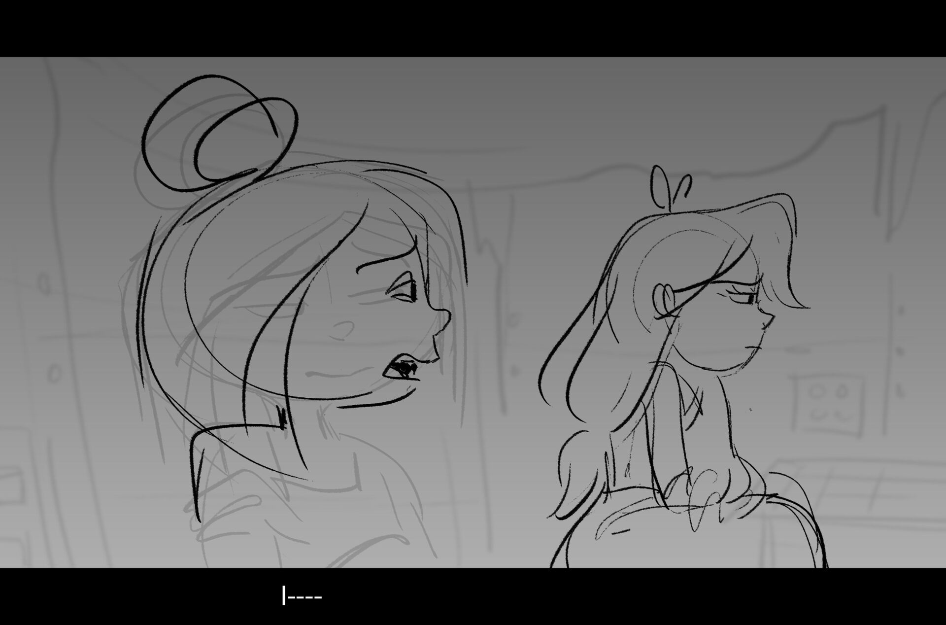 Drama/acting: A sequence I storyboarded from script pages. Because this scene is preceded by a big action scene with an intense fight between Lilith and Cinderella, I really wanted to slow things down and keep the camera simple for this first moment of real, sincere bonding between the sisters. Property of Netflix Animation Studios, 2024.