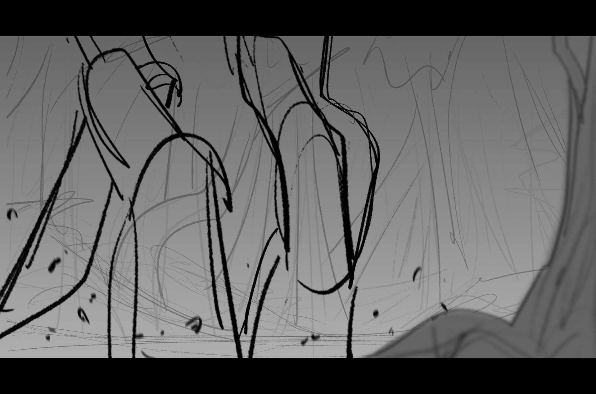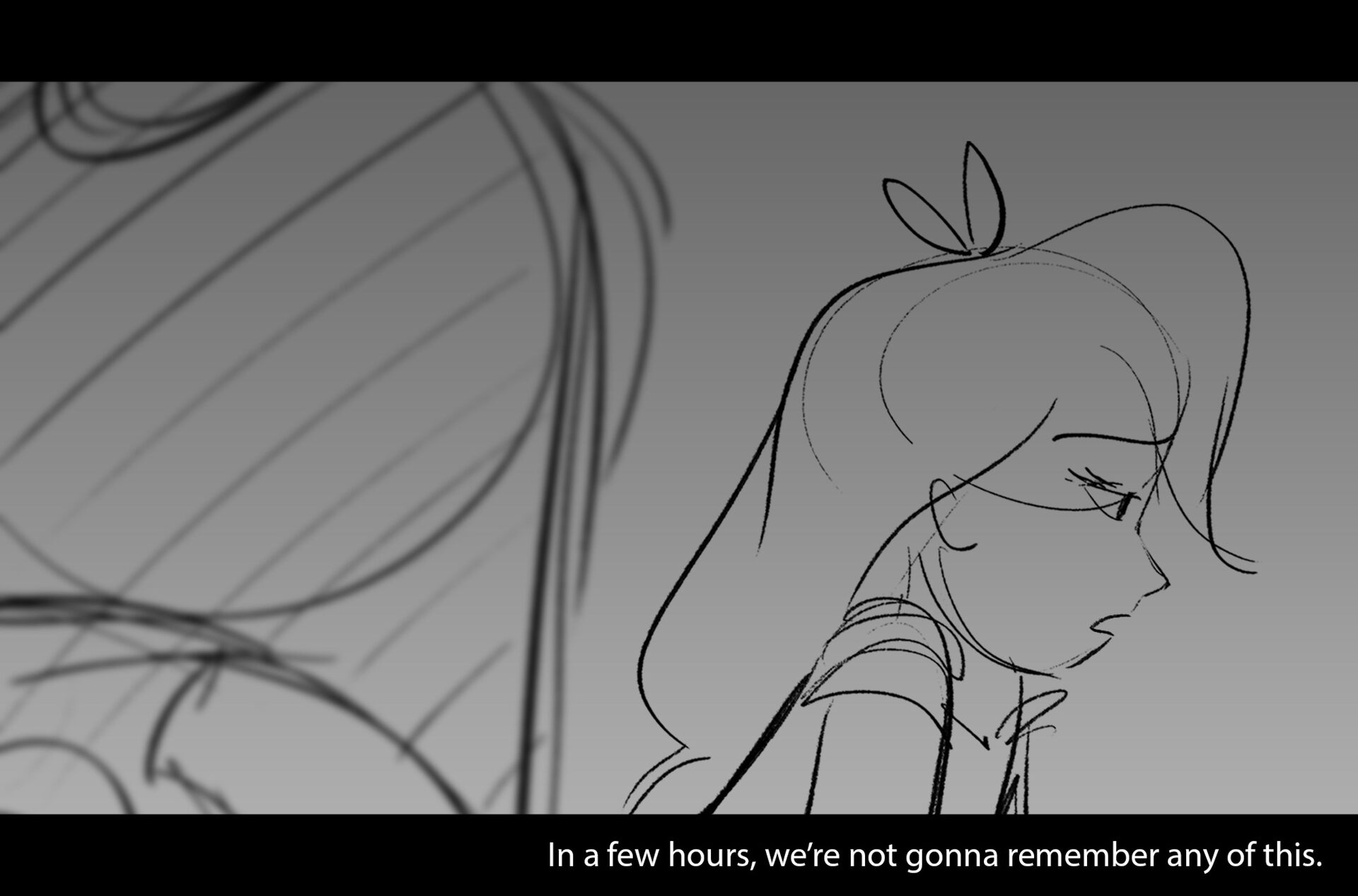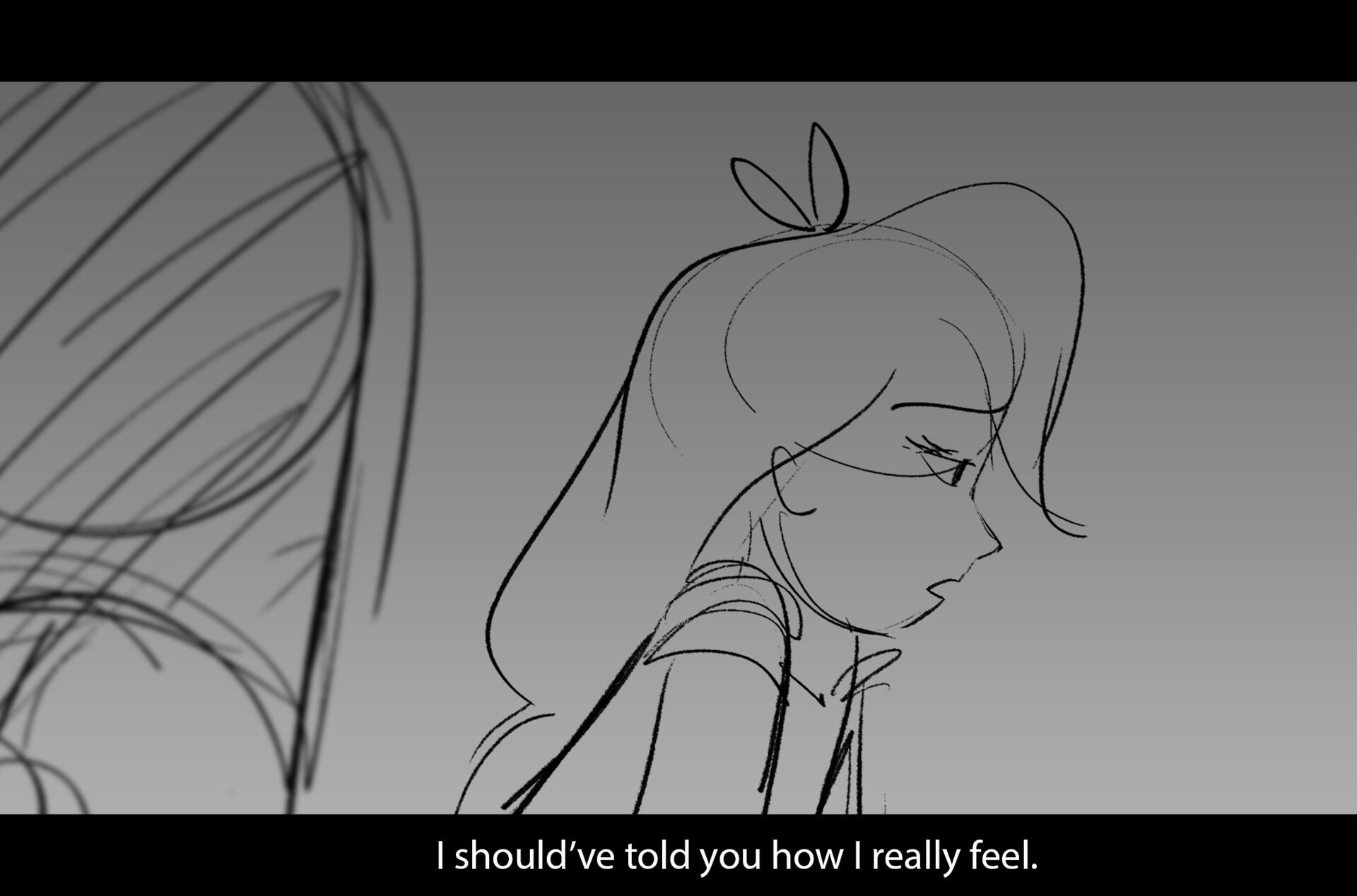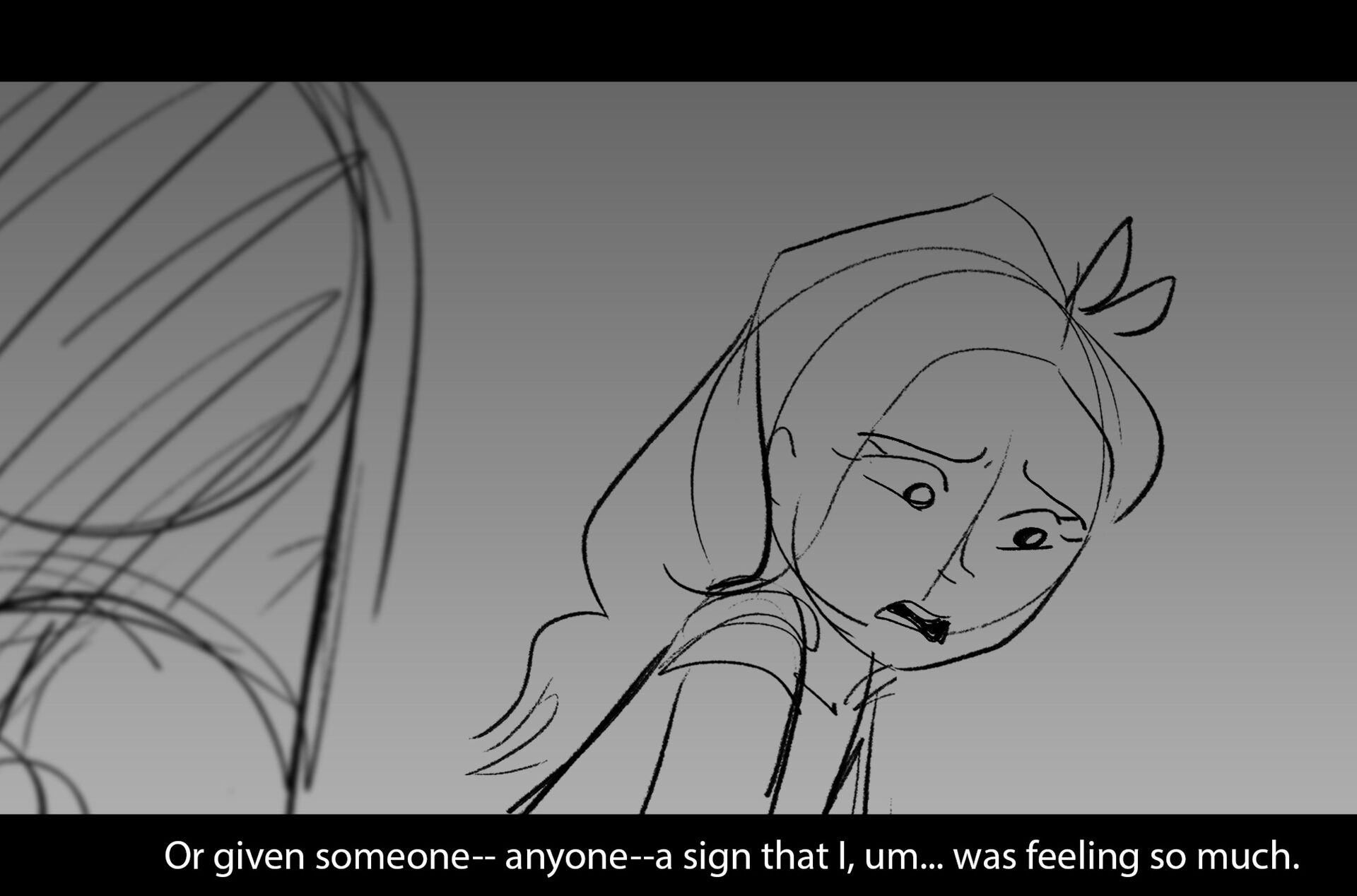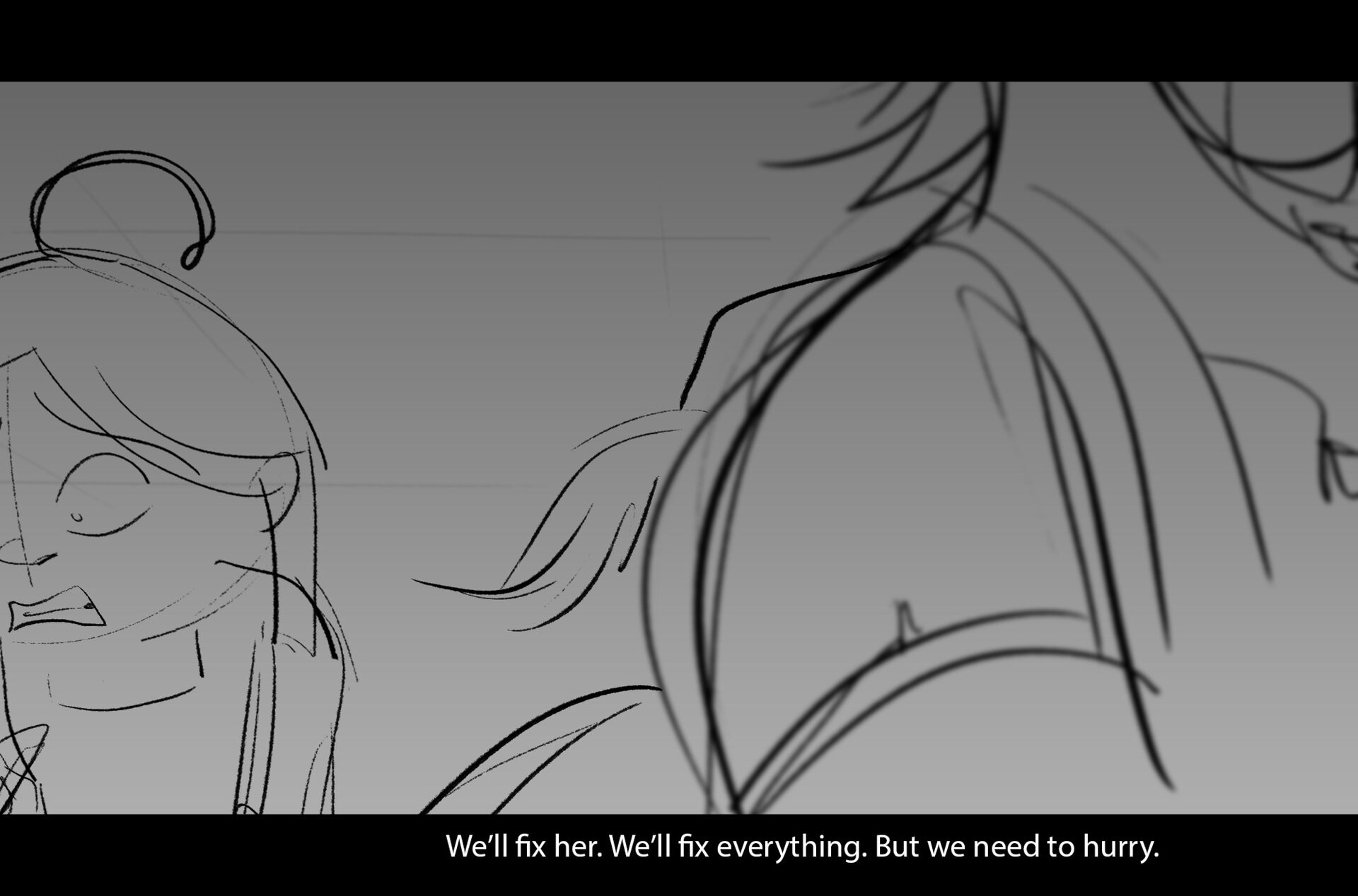 Drama/acting: A sequence I storyboarded from script pages. Because this scene is preceded by a big action scene with an intense fight between Lilith and Cinderella, I really wanted to slow things down and keep the camera simple for this first moment of real, sincere bonding between the sisters. Property of Netflix Animation Studios, 2024.