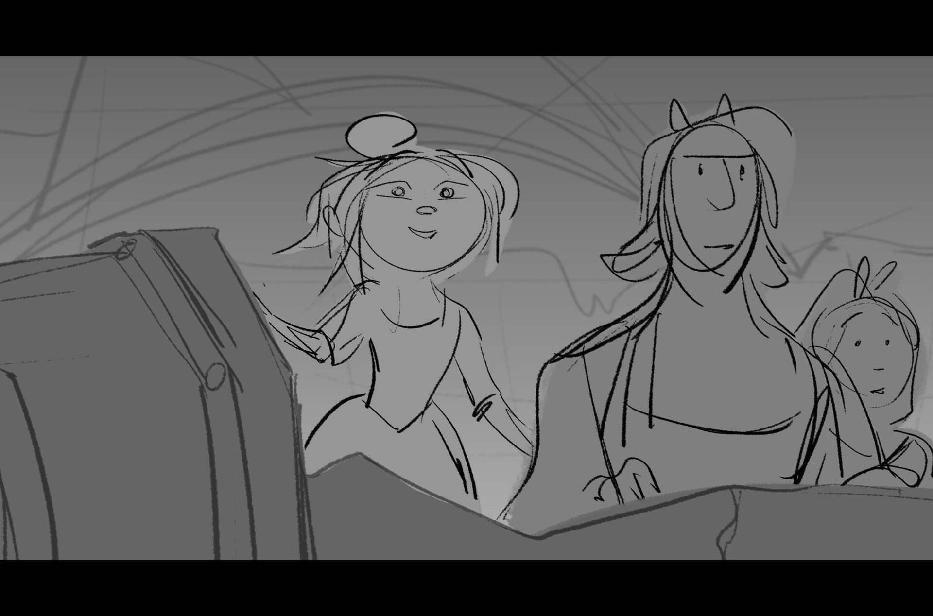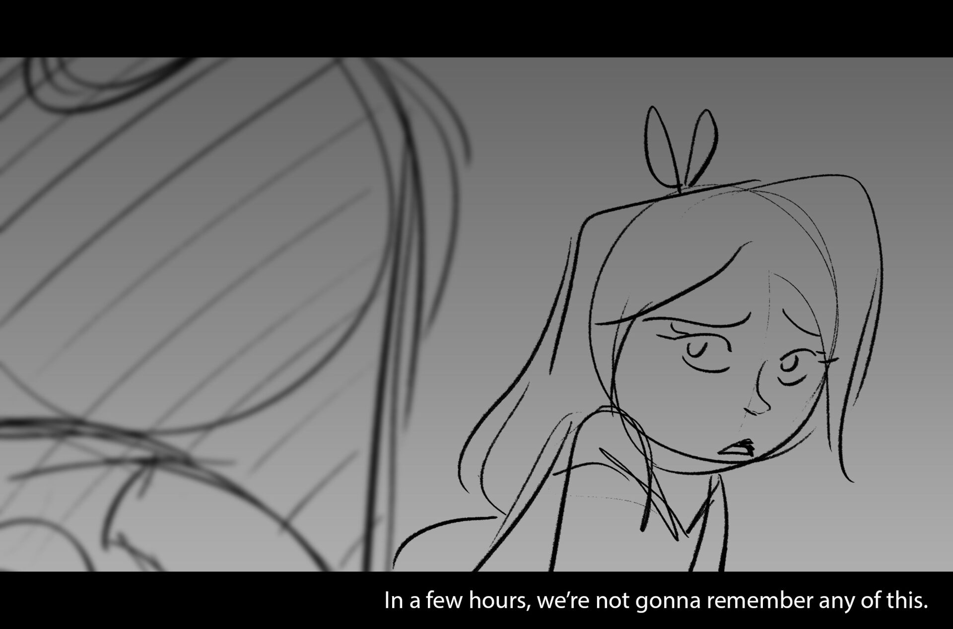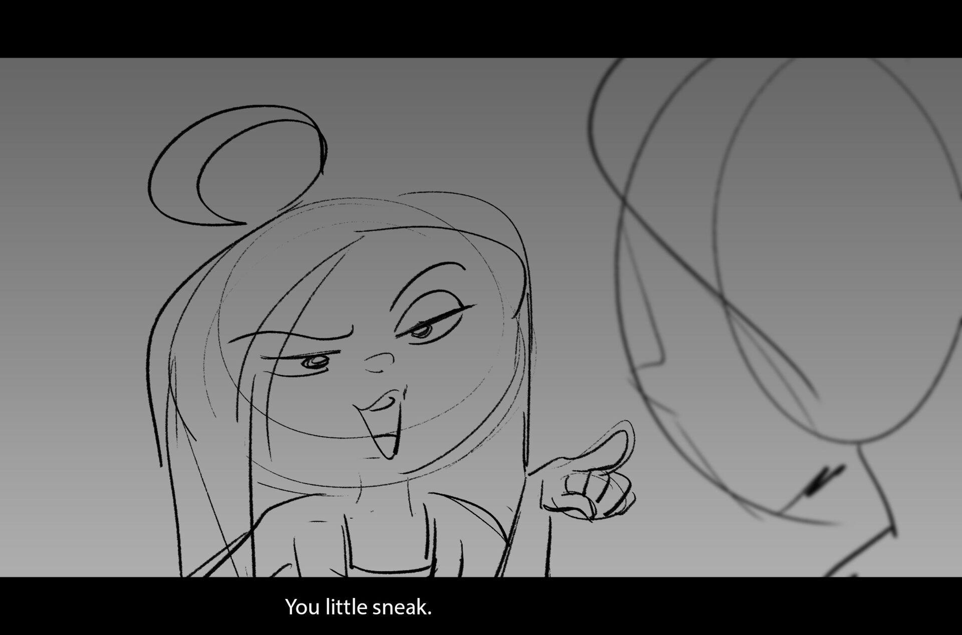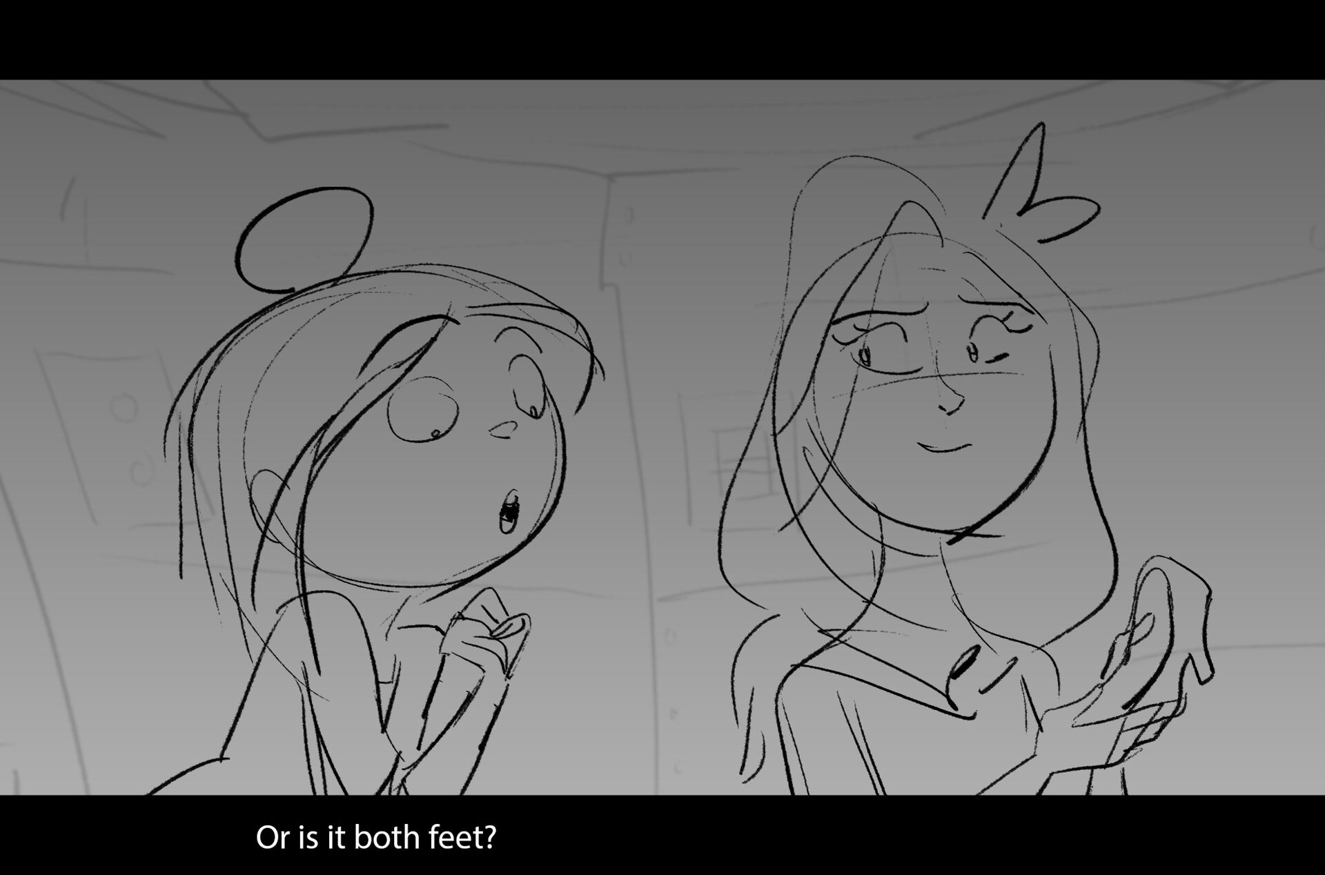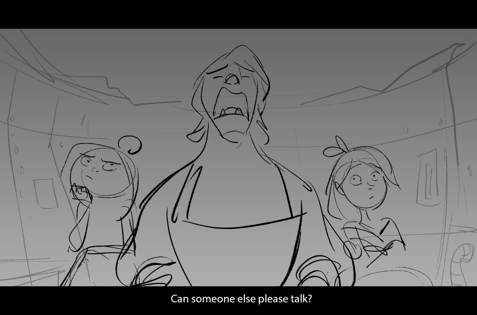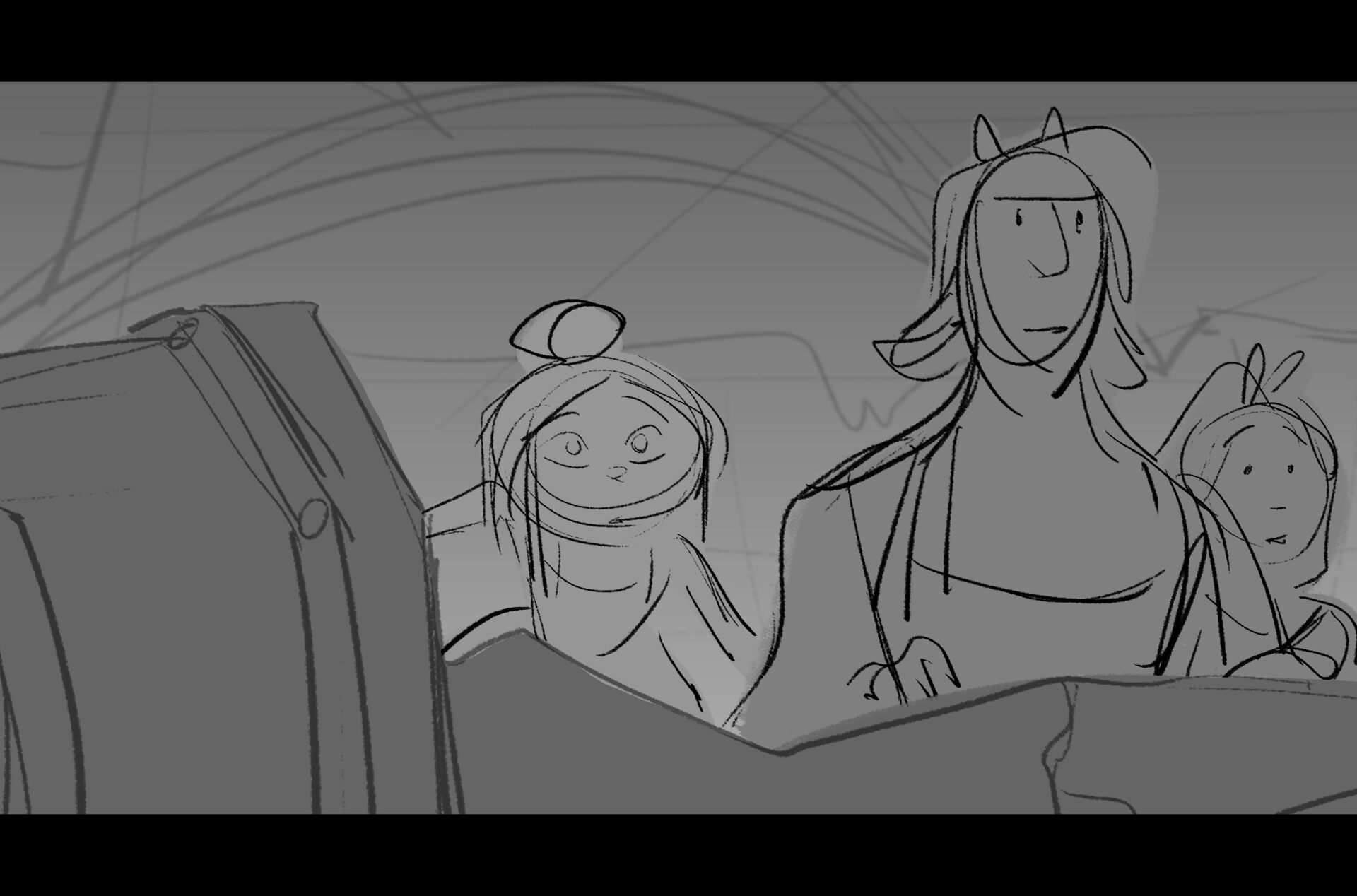 Drama/acting: A sequence I storyboarded from script pages. Because this scene is preceded by a big action scene with an intense fight between Lilith and Cinderella, I really wanted to slow things down and keep the camera simple for this first moment of real, sincere bonding between the sisters. Property of Netflix Animation Studios, 2024.