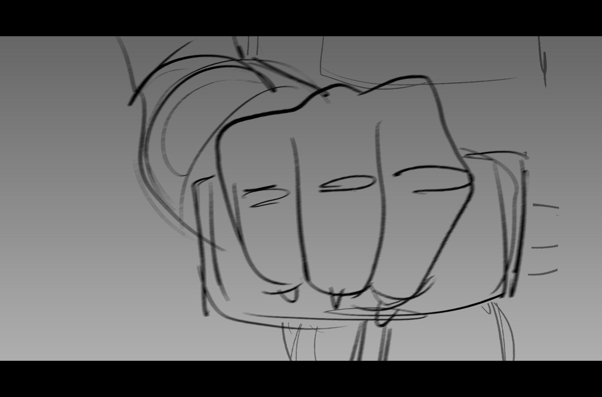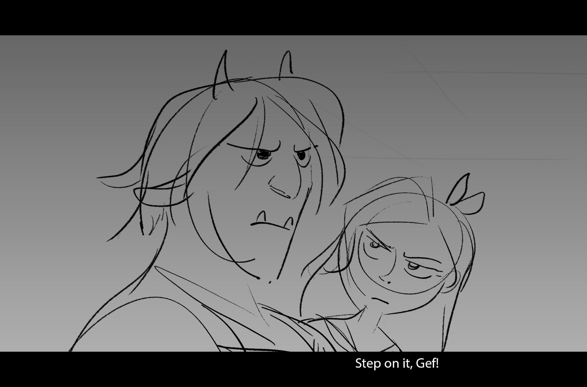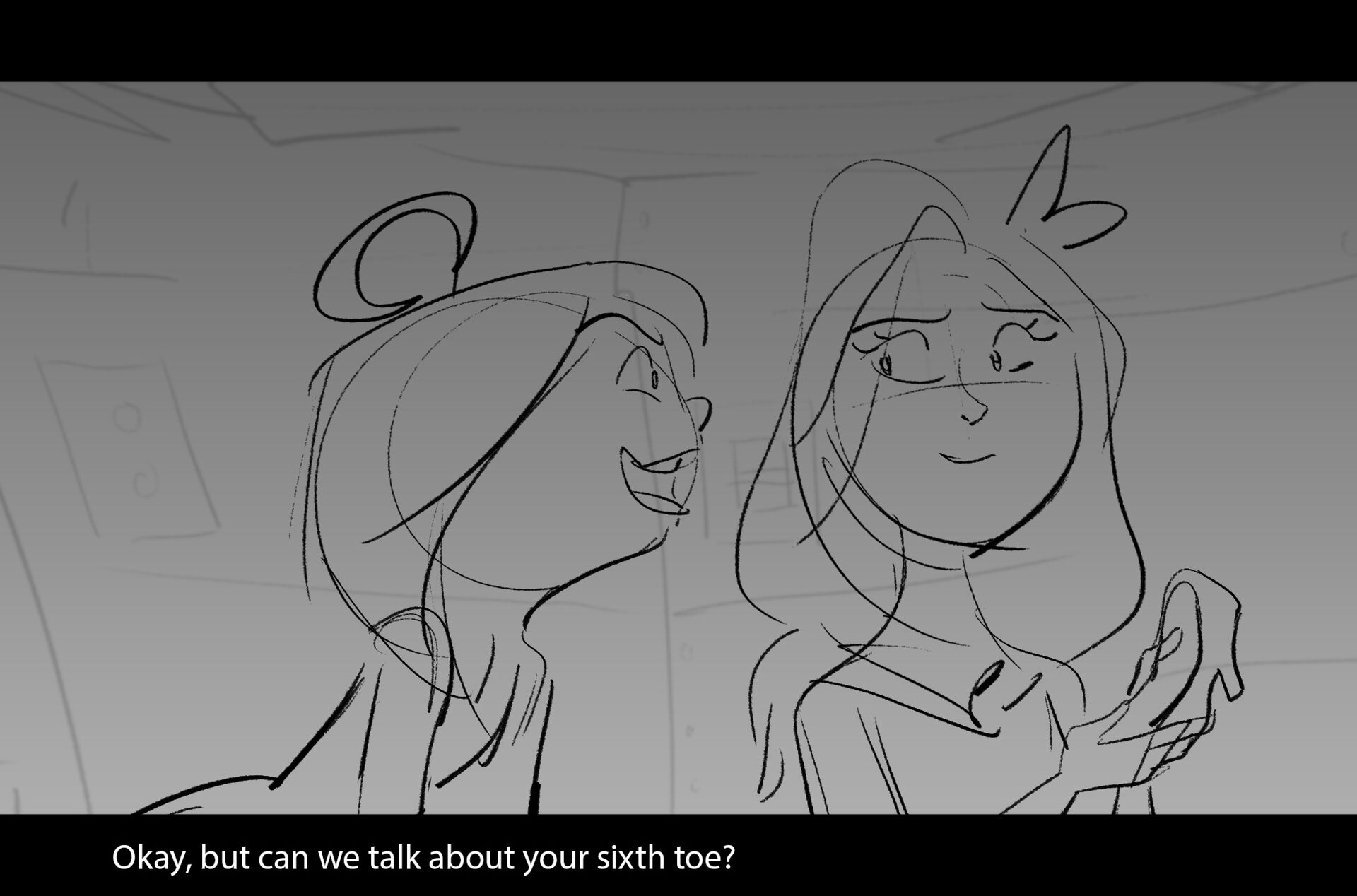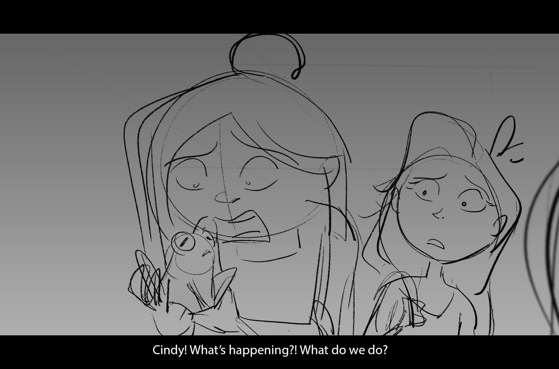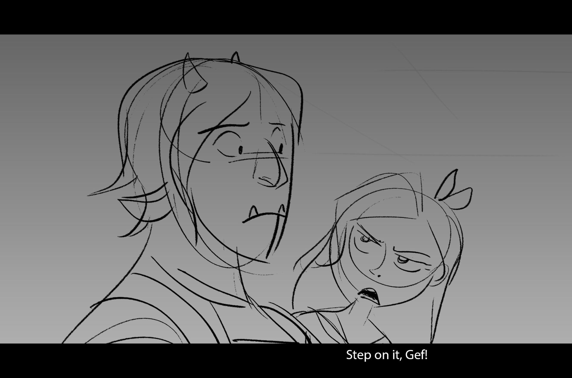 Drama/acting: A sequence I storyboarded from script pages. Because this scene is preceded by a big action scene with an intense fight between Lilith and Cinderella, I really wanted to slow things down and keep the camera simple for this first moment of real, sincere bonding between the sisters. Property of Netflix Animation Studios, 2024.