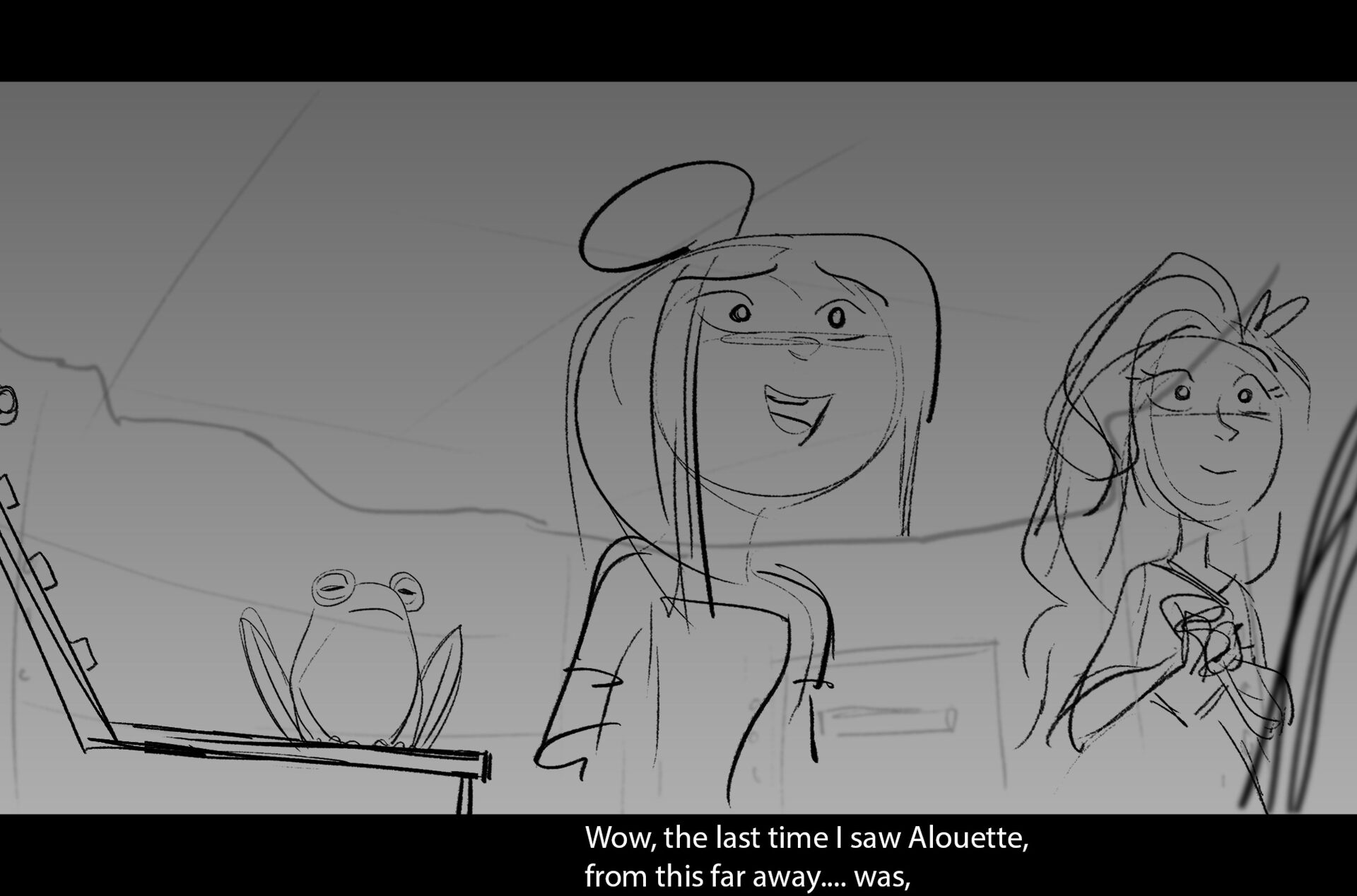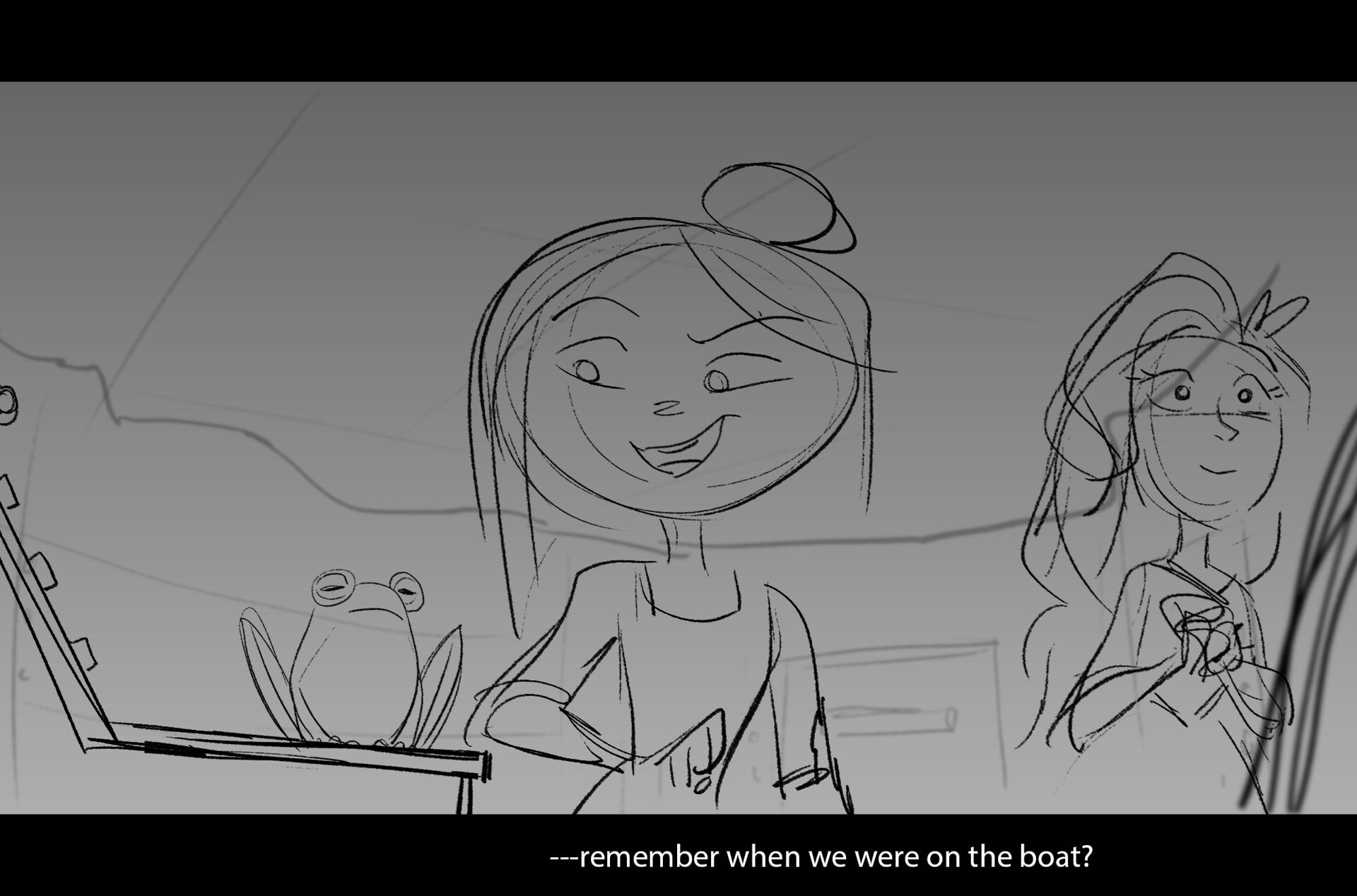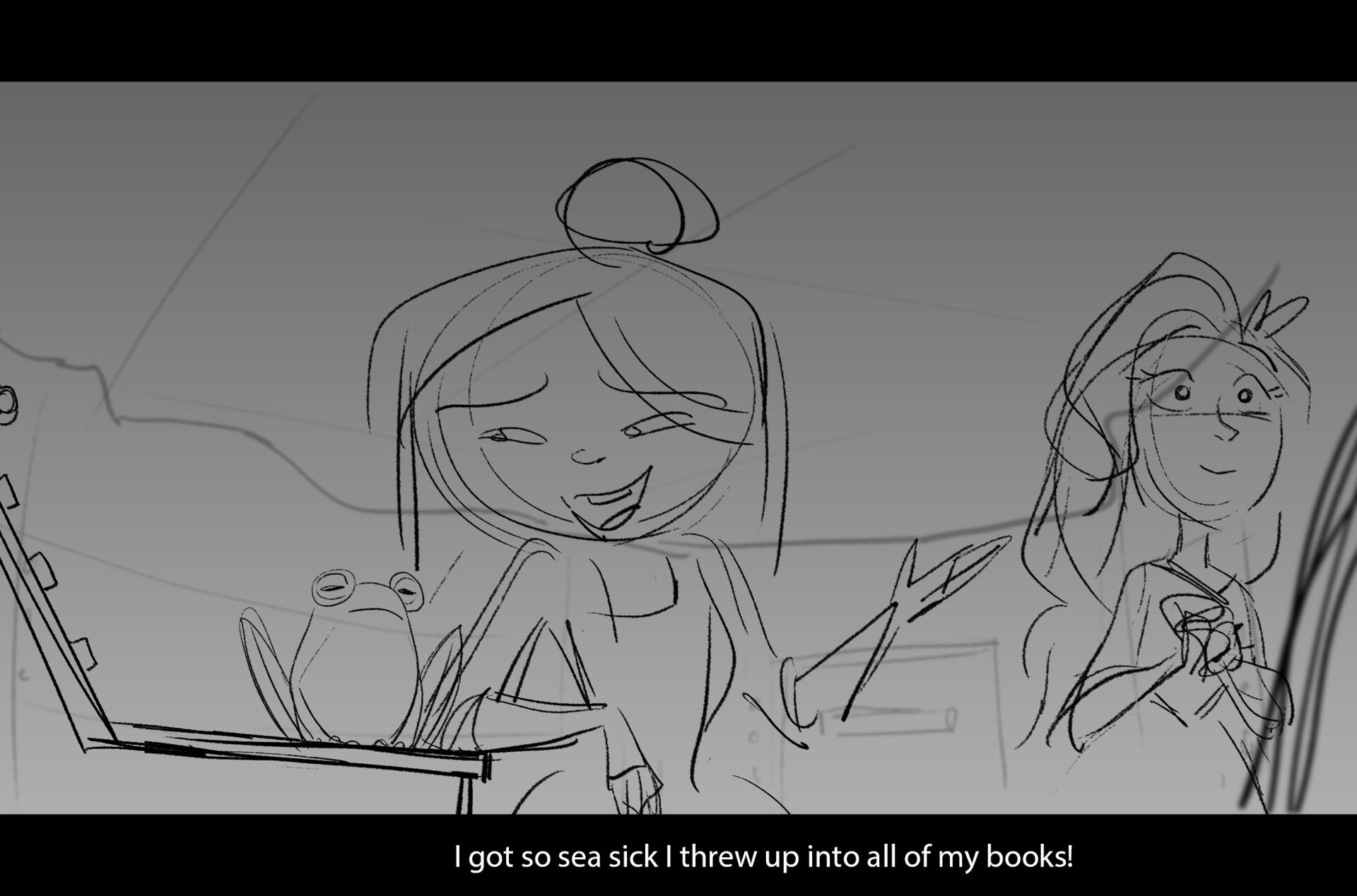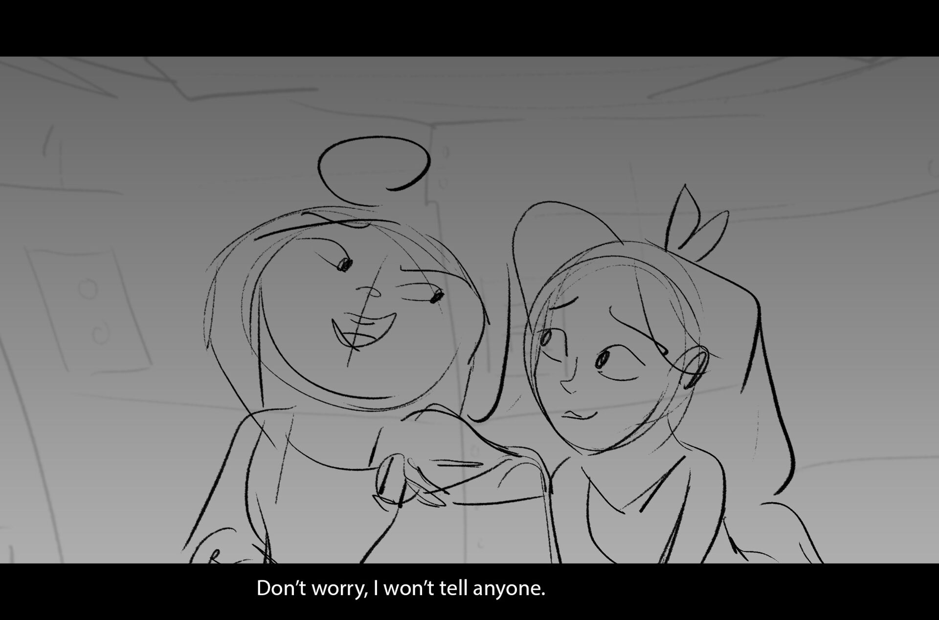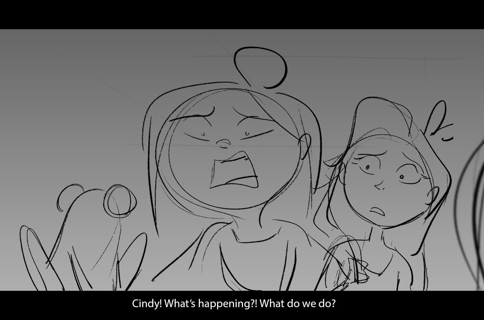 Drama/acting: A sequence I storyboarded from script pages. Because this scene is preceded by a big action scene with an intense fight between Lilith and Cinderella, I really wanted to slow things down and keep the camera simple for this first moment of real, sincere bonding between the sisters. Property of Netflix Animation Studios, 2024.