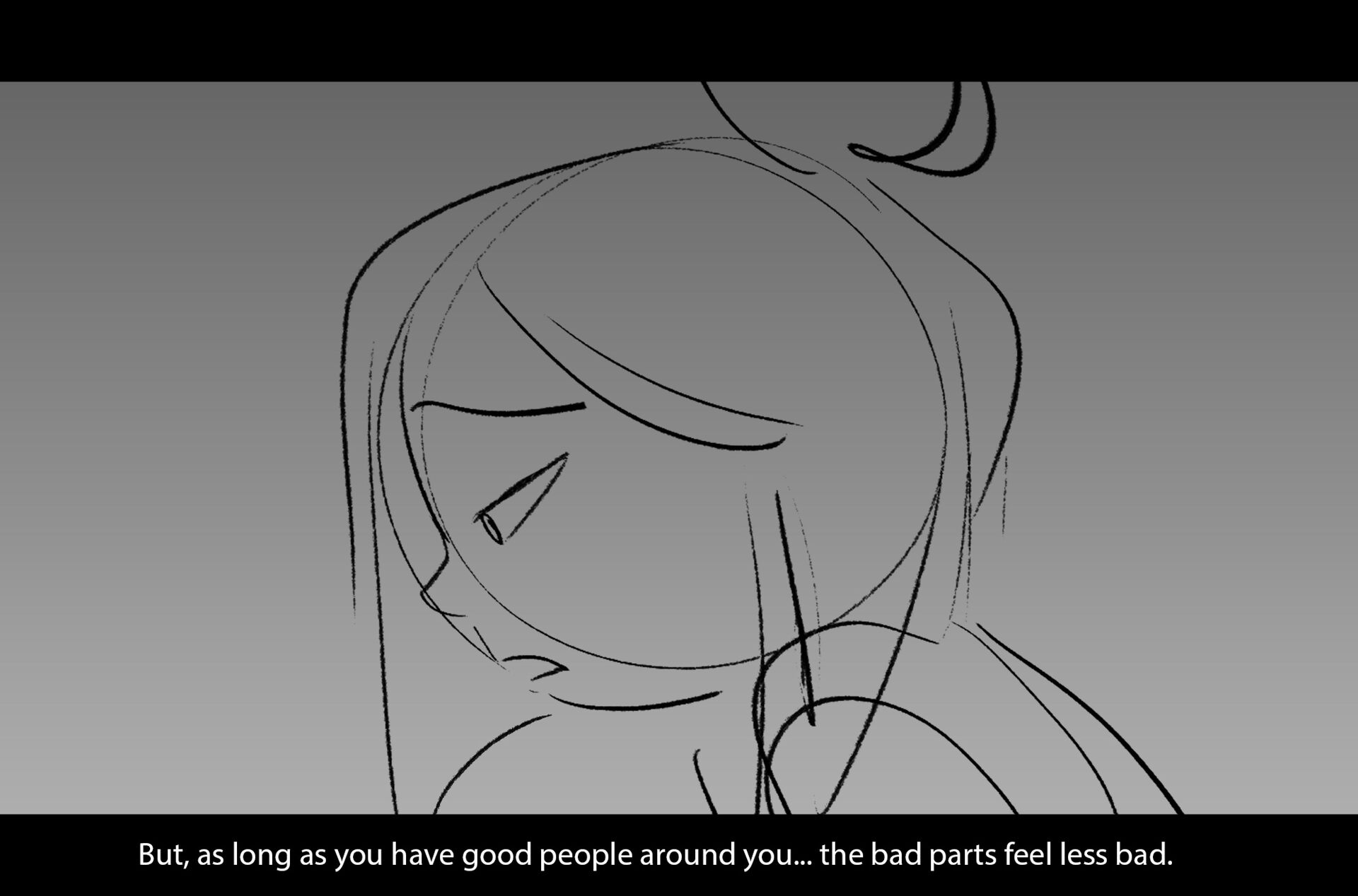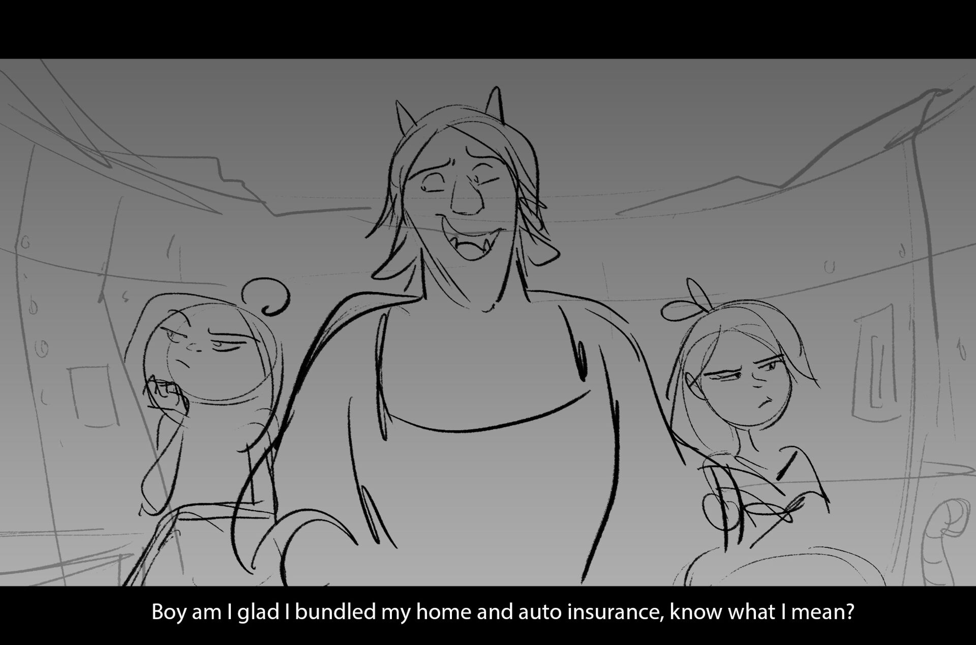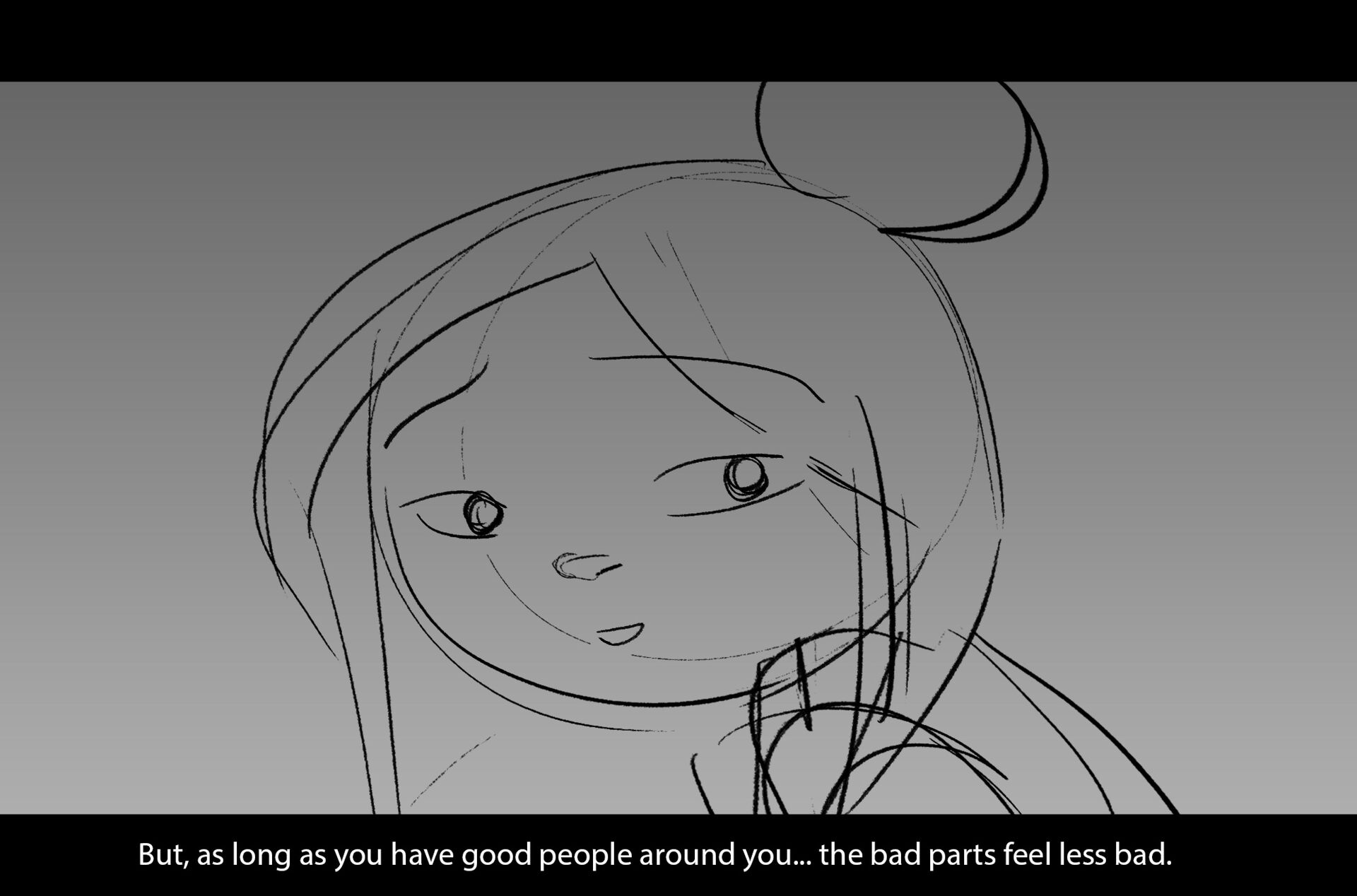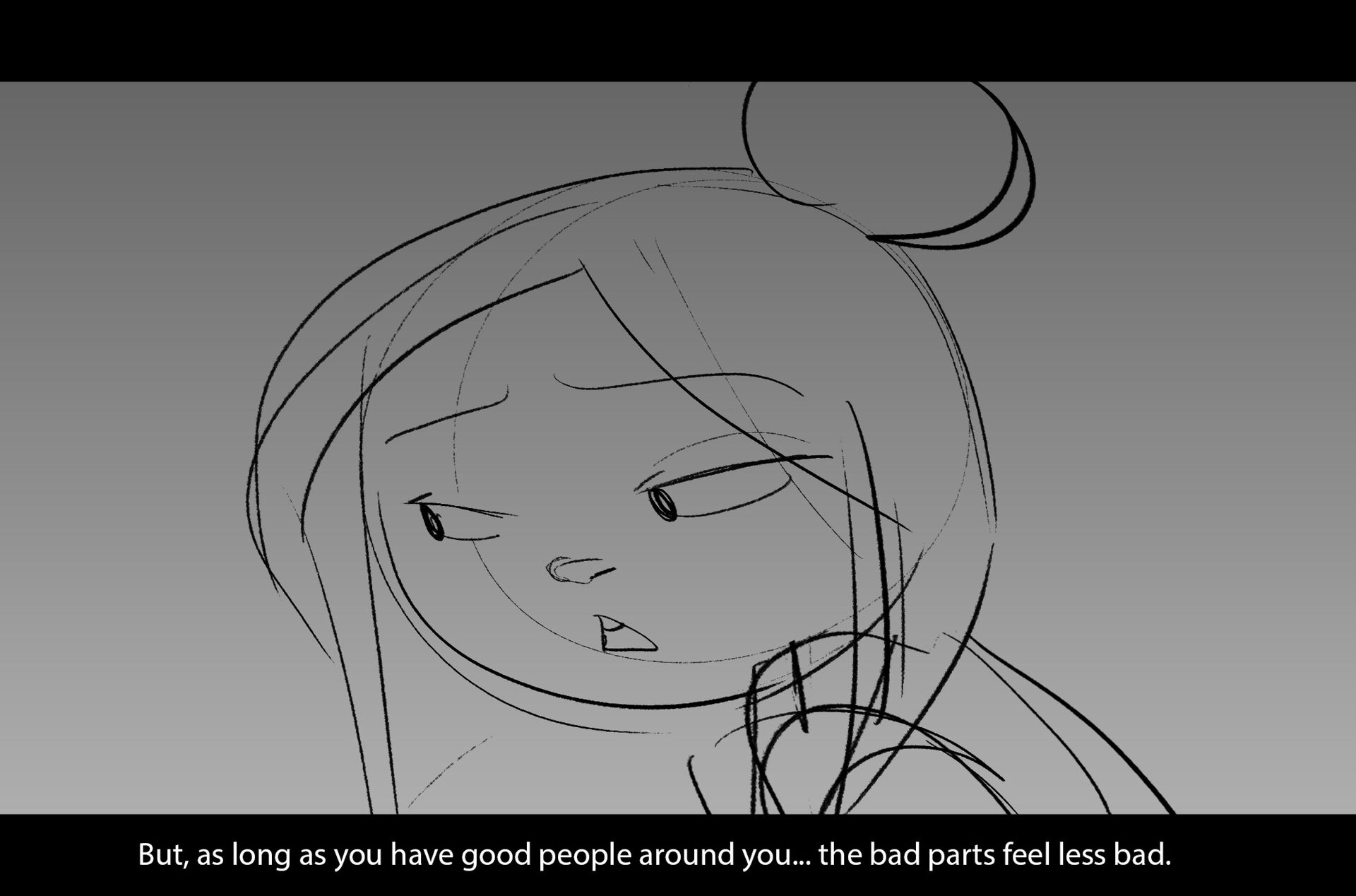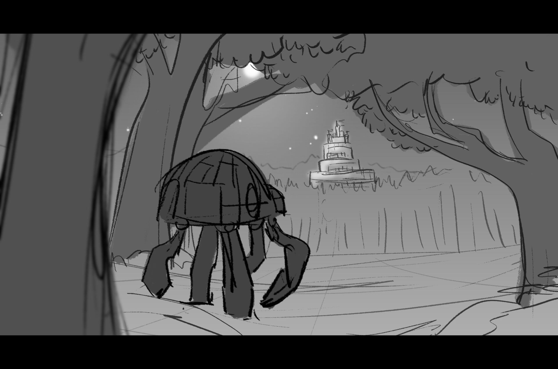 Drama/acting: A sequence I storyboarded from script pages. Because this scene is preceded by a big action scene with an intense fight between Lilith and Cinderella, I really wanted to slow things down and keep the camera simple for this first moment of real, sincere bonding between the sisters. Property of Netflix Animation Studios, 2024.