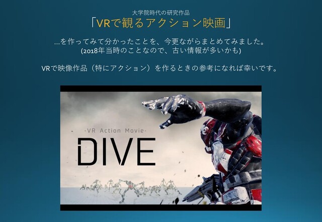 学生時代に制作した「VRで観るアクション映画」に関して、