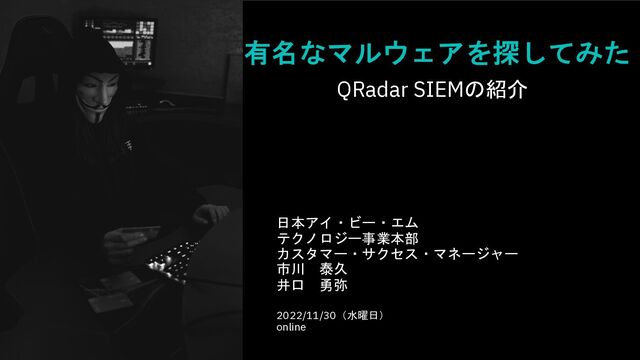 QRadar SIEMの紹介 有名なマルウェアを探してみた 1 日本アイ・ビー・エム テクノロジー事業本部 カスタマー・サクセス・マネージャー 市川 泰久 井口