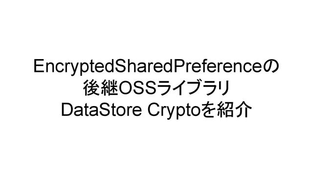 DataStore Cryptoとは EncryptedSharedPreferenceの後継として今年9月に公開したOSSライブラリ https://github.com/cybozu/datastore-crypto