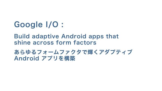 Google I/O : Build adaptive Android apps that shine across
