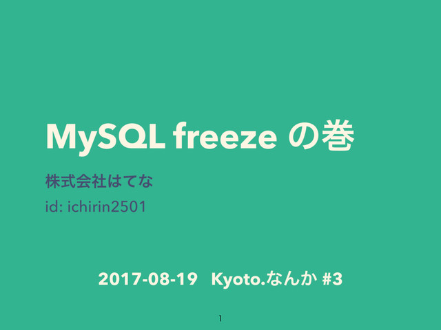 MySQL freeze ͷר גࣜձࣾͯͳ id: ichirin2501 2017-08-19 Kyoto.ͳΜ͔ #3