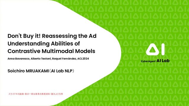 Anna Bavaresco, Alberto Testoni, and Raquel Fernández. 2024. Don’t Buy it! Reassessing the Ad Understanding Abilities of Contrastive Multimodal Models. In Proceedings of the 62nd Annual Meeting of the Association for Computational Linguistics (Volume 2: Short Papers), pages 870–879, Bangkok, Thailand. Association for Computational Linguistics.