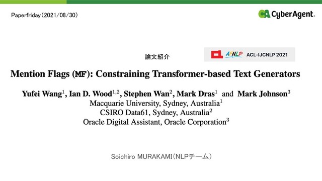 社内の論文読み会にて発表した論文です。