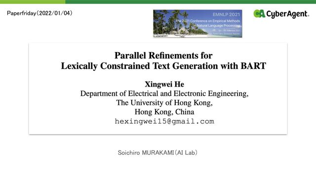 do good business together . ” “we will do good business” 【Example】 “we will do good baseball” 原文 原文から任意のトー クン列を抽出 15%をランダムなトー クンに置換 “<M> we will do good <M>” 2 0 0 0 1 Action classifierのラベル作成 • Copy (0) • Replacement (1) • Insertion (2) Insertionの教師データをどのように選ぶか ⇛ {Right, Left, Middle, Rand, TF-IDF}
