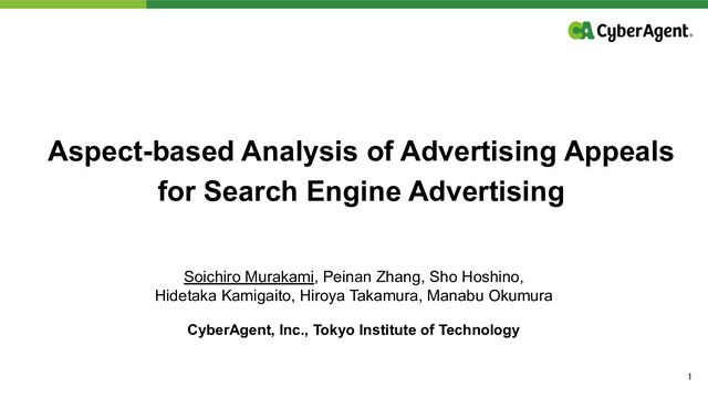 Soichiro Murakami, Peinan Zhang, Sho Hoshino, Hidetaka Kamigaito, Hiroya Takamura, and Manabu Okumura. 2022. Aspect-based Analysis of Advertising Appeals for Search Engine Advertising. In Proceedings of the 2022 Conference of the North American Chapter of the Association for Computational Linguistics: Human Language Technologies: Industry Track, pages 69–78, Hybrid: Seattle, Washington + Online. Association for Computational Linguistics.
