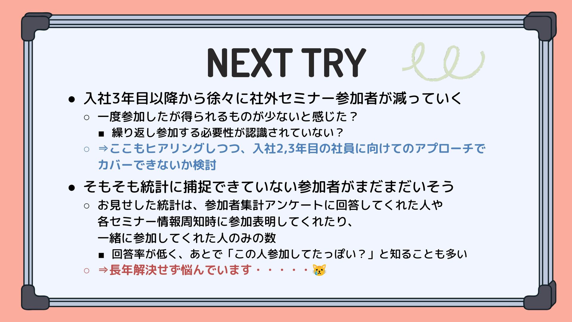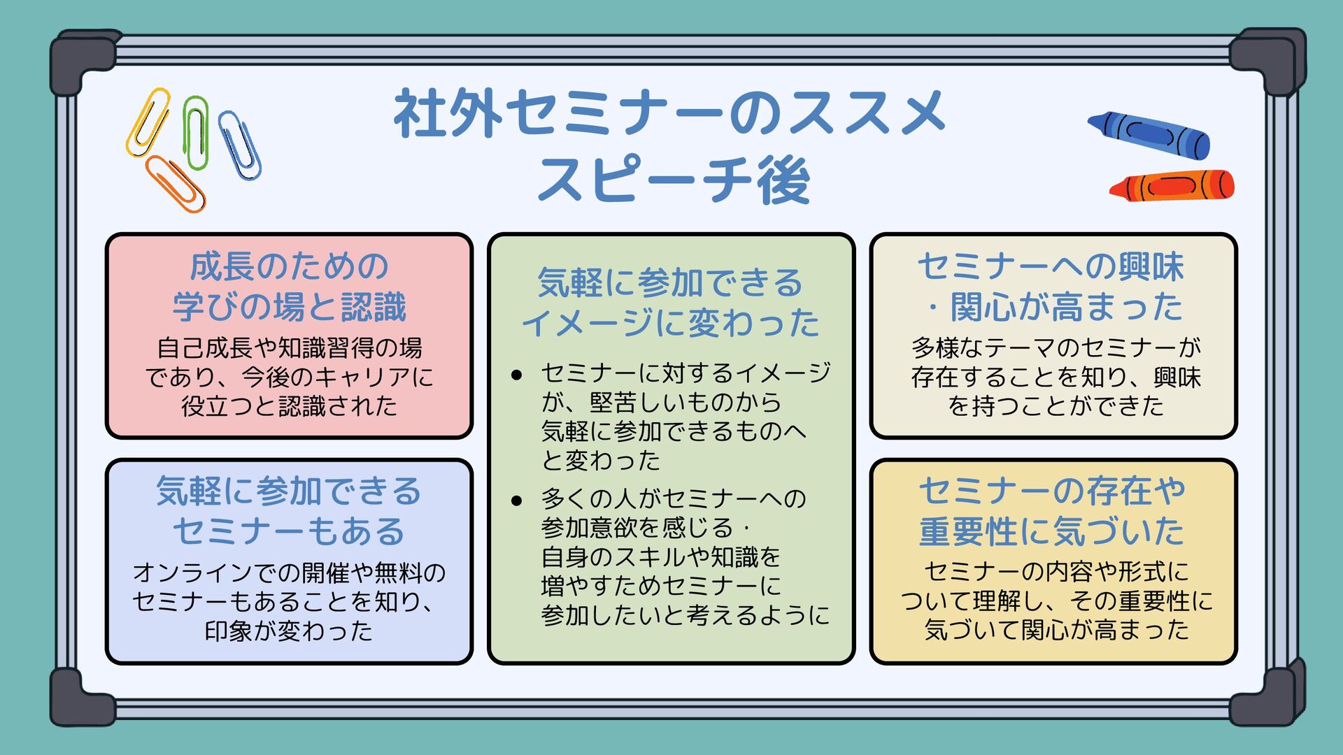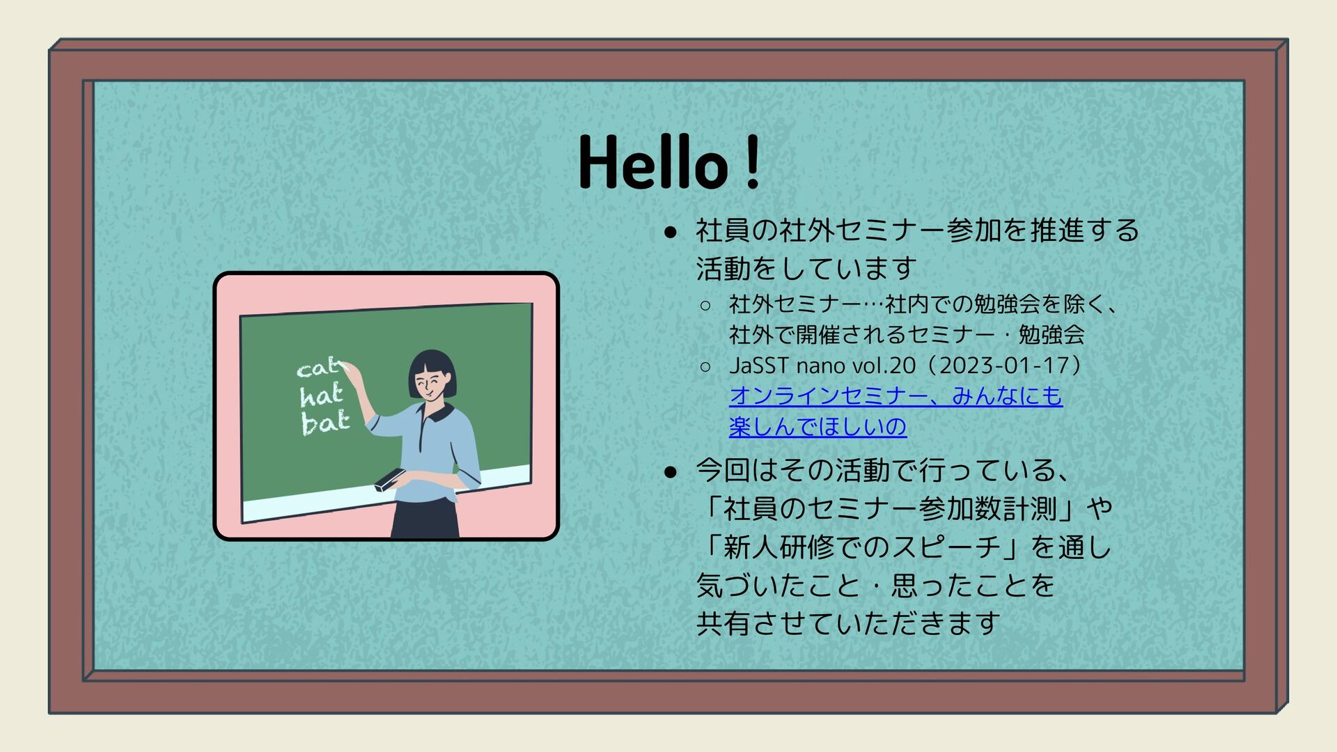 …社内で「社外セミナーの参加を推進する活動」を始めた経緯や具体的にどんなことをしてるのかはこちらご参照ください