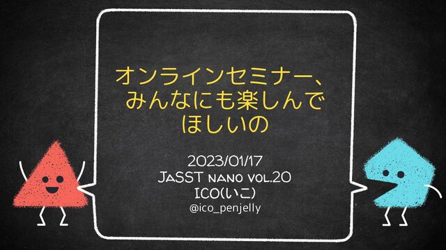 オンラインセミナー、 みんなにも楽しんで ほしいの 2023/01/17 JaSST nano vol.20 ICO(いこ) @ico_penjelly