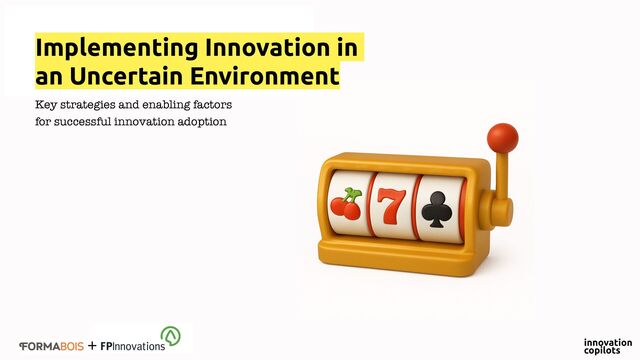 Five key principles to implement realistic and effective innovation strategies in times og high uncertainties. A keynote for FP Innovations a private not-for-profit organization that specializes in the creation of solutions in support of the Canadian forest sector’s global competitiveness.