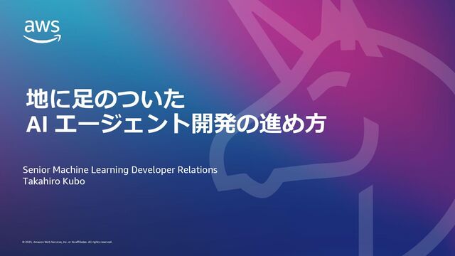 or its affiliates. All rights reserved. 46 銀行からテクノロジー企業まで 幅広いお客様が活用 2025/9/1 に最新となる v3 を公開、提供を開始済み。 ワークショップ期間中に AI Coding Agent を用いた モックの開発と効果計測・ 反映までを実践する。 https://github.com/aws-samples/aws-ml-enablement-workshop