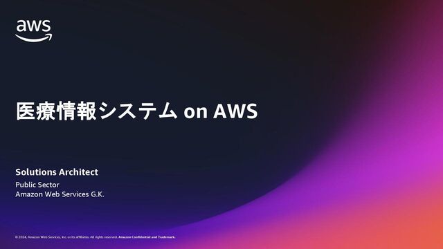 rights reserved. Amazon Confidential and Trademark. 医療情報システム向け AWS 利用リファレンス AWS パートナー o キヤノンITソリューションズ株式会社 o 日本電気株式会社 o 株式会社日立システムズ o フィラーシステムズ株式会社 医療情報システム向け AWS 利用リファレンスの紹介ページ https://aws.amazon.com/jp/local/health/medical-information-guidelines-on-aws0/ 本リファレンスにより、 ガイドラインの要求事項に対する ✓ AWSのセキュリティ対応の内容と、その根拠 と成る文章とその記載箇所 ✓ ガイドラインに適合するAWSサービス