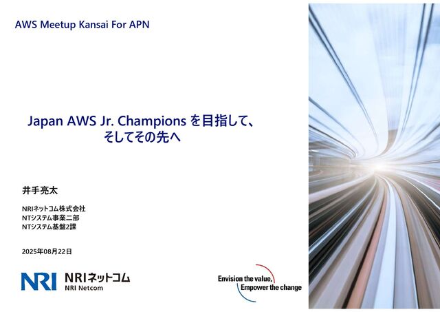 Japan AWS Jr. Champions を目指して、 そしてその先へ 2025年08月22日 NRIネットコム株式会社 NTシステム事業二部 NTシステム基盤2課
