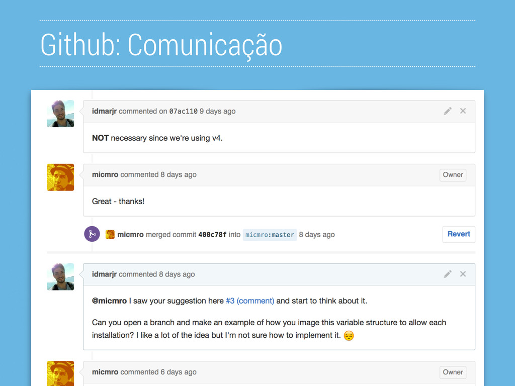 Nessa palestra eu explico brevemente os conceitos por trás do desenvolvimento iterativo, como ele ajuda times a evitar retrabalho desnecessário, organizar um fluxo constante de entregas e a manter o produto sempre evoluindo. Abordo sobre como obter e analisar dados que guiarão as decisões de cada iteração. Para finalizar eu introduzo alguns dos principais recursos do Github que irão ajudar o time durante o processo iterativo. (Essa última parte mais focada para Designers que normalmente não são familiarizados com o git.).