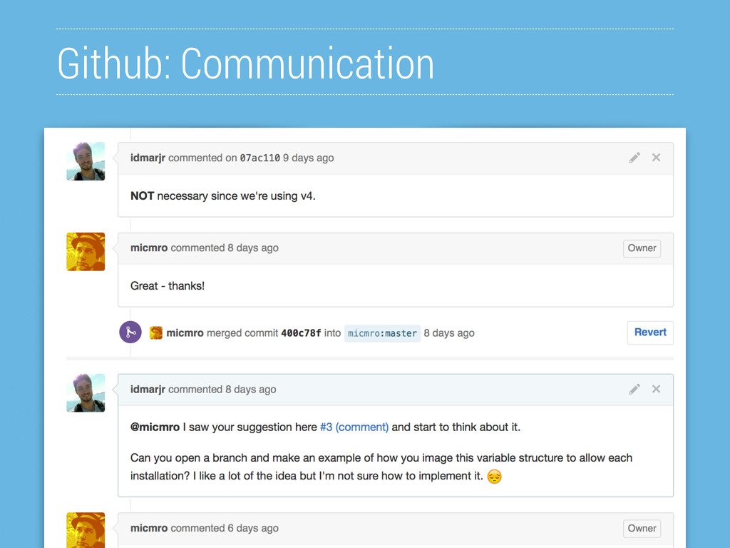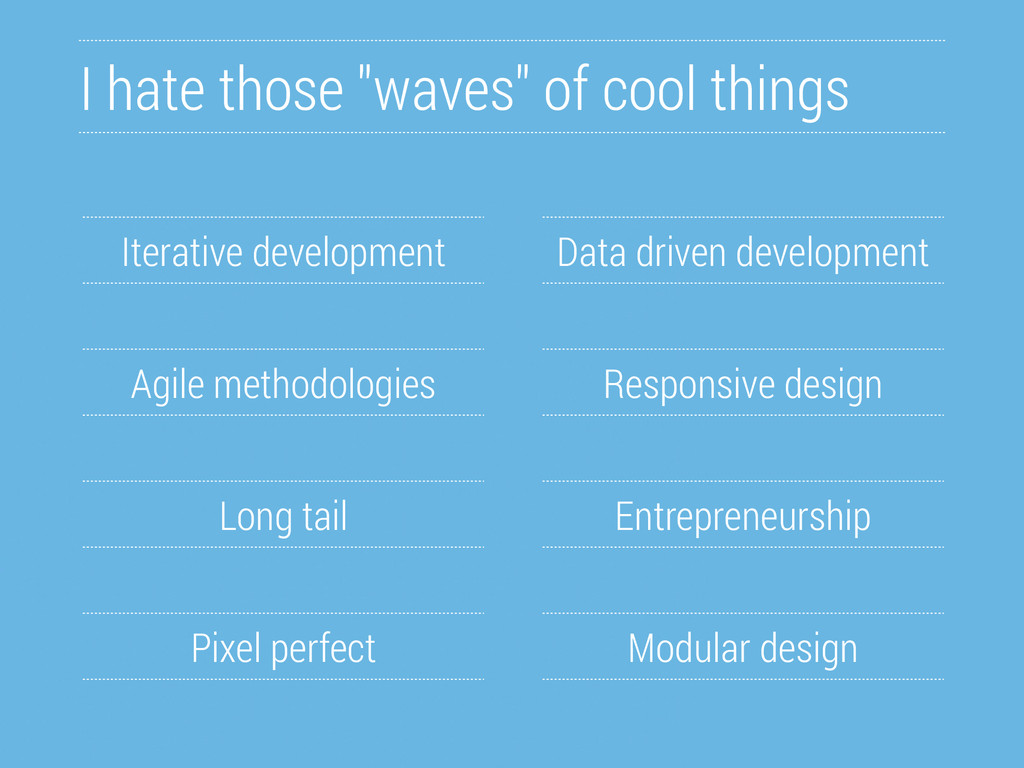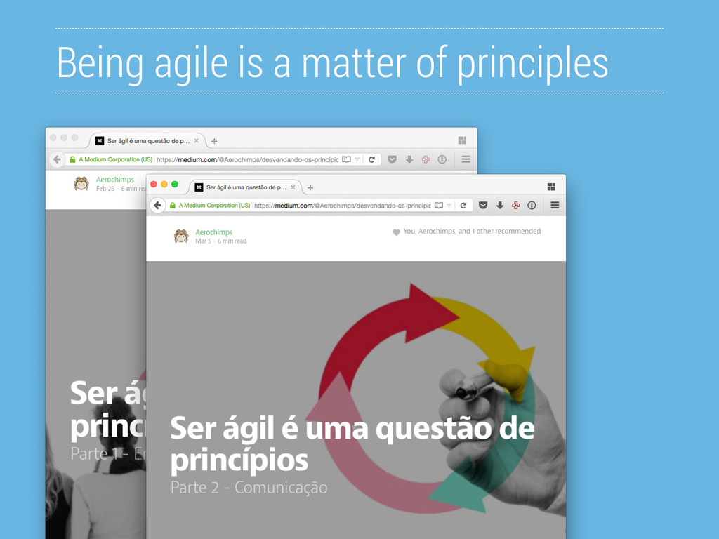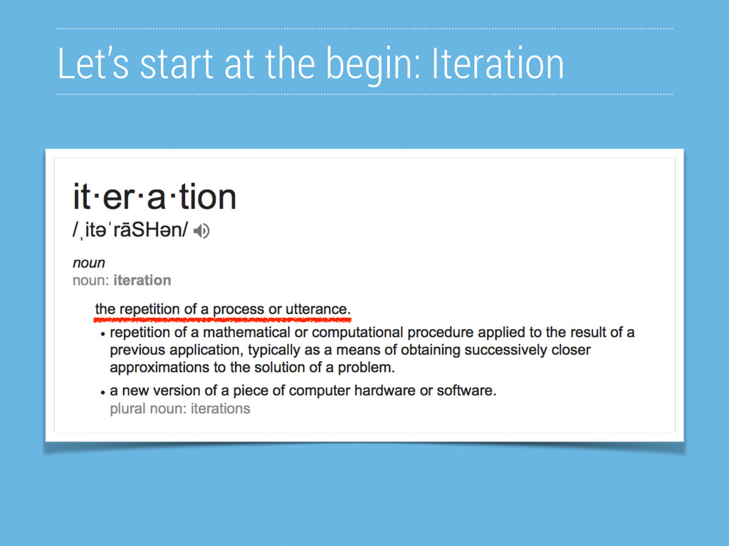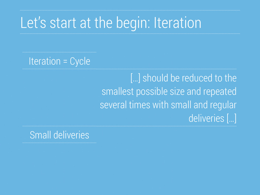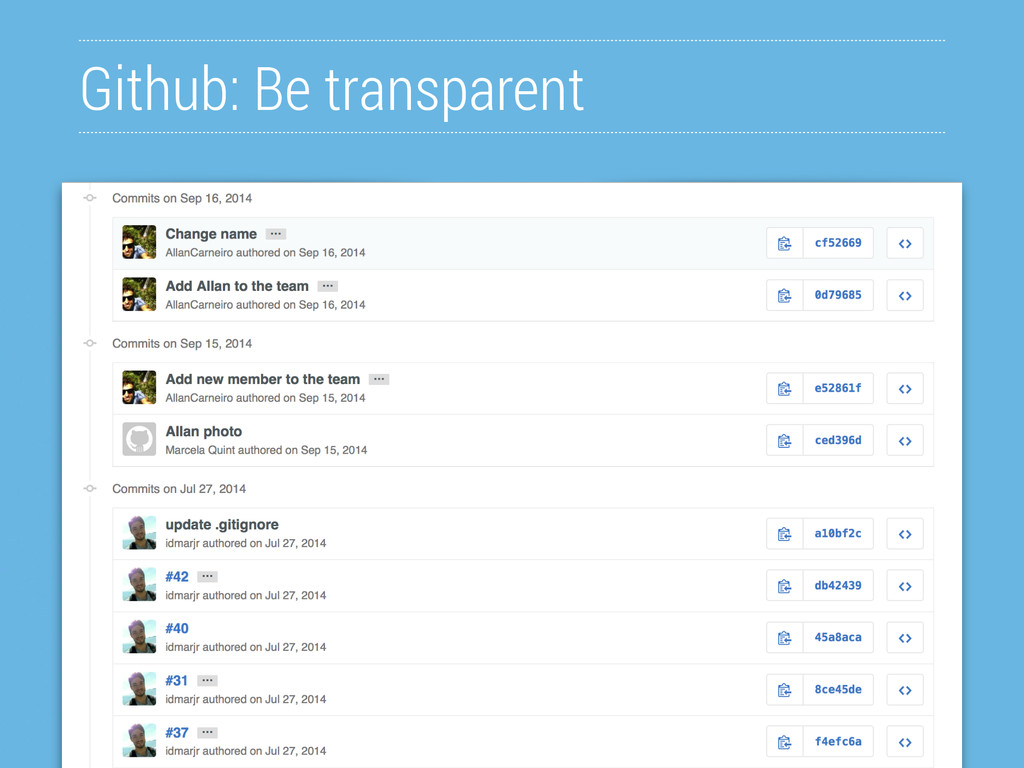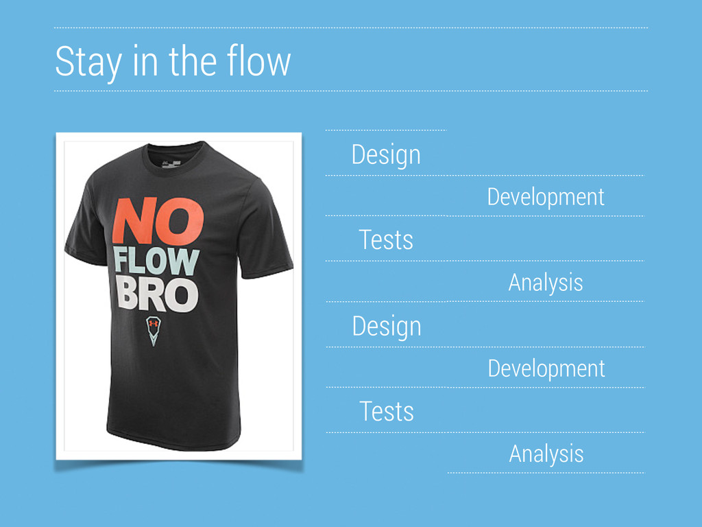 In this talk I explained shortly what is the concept behind the iterative development, how it helps teams to avoid unnecessary rework, organize a constant delivery flow and keep the product evolving. Briefly I speak about how get and analyze data to guide decisions of each iteration. To finish the talk I introduce some of the Github features that helps the teams during the iteration process (Mostly focused in Designers that aren't familiarized with git.).