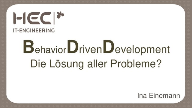 Alle sprechen von BDD und davon, wie viele Probleme damit, vor allem beim Testen und Anforderungsmanagement, gelöst werden können. BDD verspricht eine bessere Kommunikation innerhalb des Teams und mit dem Kunden, eine lebendige Dokumentation und höhere Softwarequalität sowie die Entzerrung des Testens.