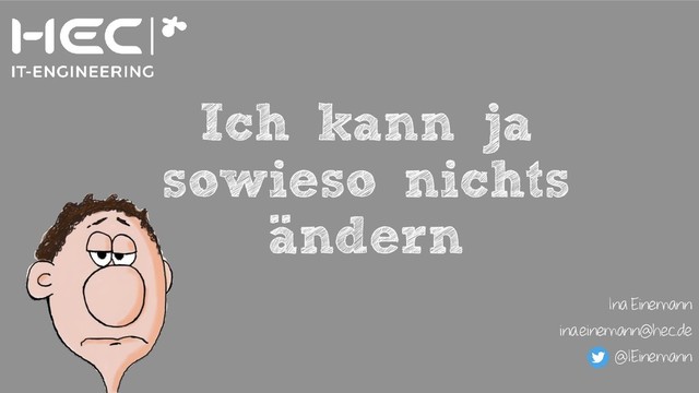 In diesem Vortrag zeige ich einige Wege auf, wie Kollegen und Vorgesetzte überzeugt werden können, neue Prozessrahmen, Methoden und Praktiken auszuprobieren und dann auch zu leben.
