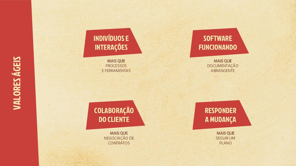 MAIS QUE NEGOCIAÇÃO DE CONTRATOS COLABORAÇÃO DO CLIENTE MAIS QUE DOCUMENTAÇÃO ABRANGENTE SOFTWARE FUNCIONANDO MAIS QUE SEGUIR UM PLANO RESPONDER A MUDANÇA
