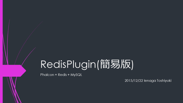 RedisPlugin(簡易版) Phalcon + Redis + MySQL 2015/12/22 Ienaga Toshiyuki