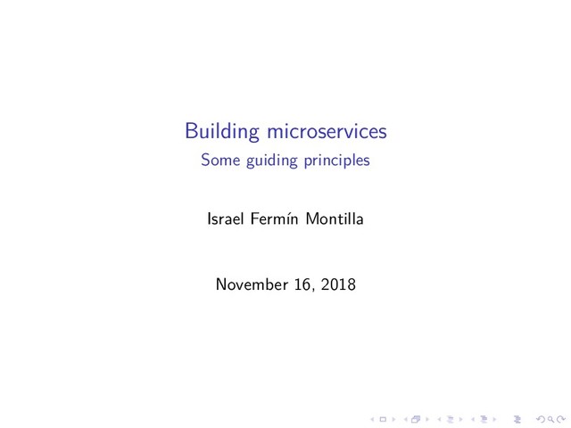 In this lightning talk I go through few principles I like to keep in mind when building or designing a system with this architectural pattern so I can keep the architecture clean and simple and minimize the headaches produced by the inherent complexities in a distributed system. Everything in under 5min
